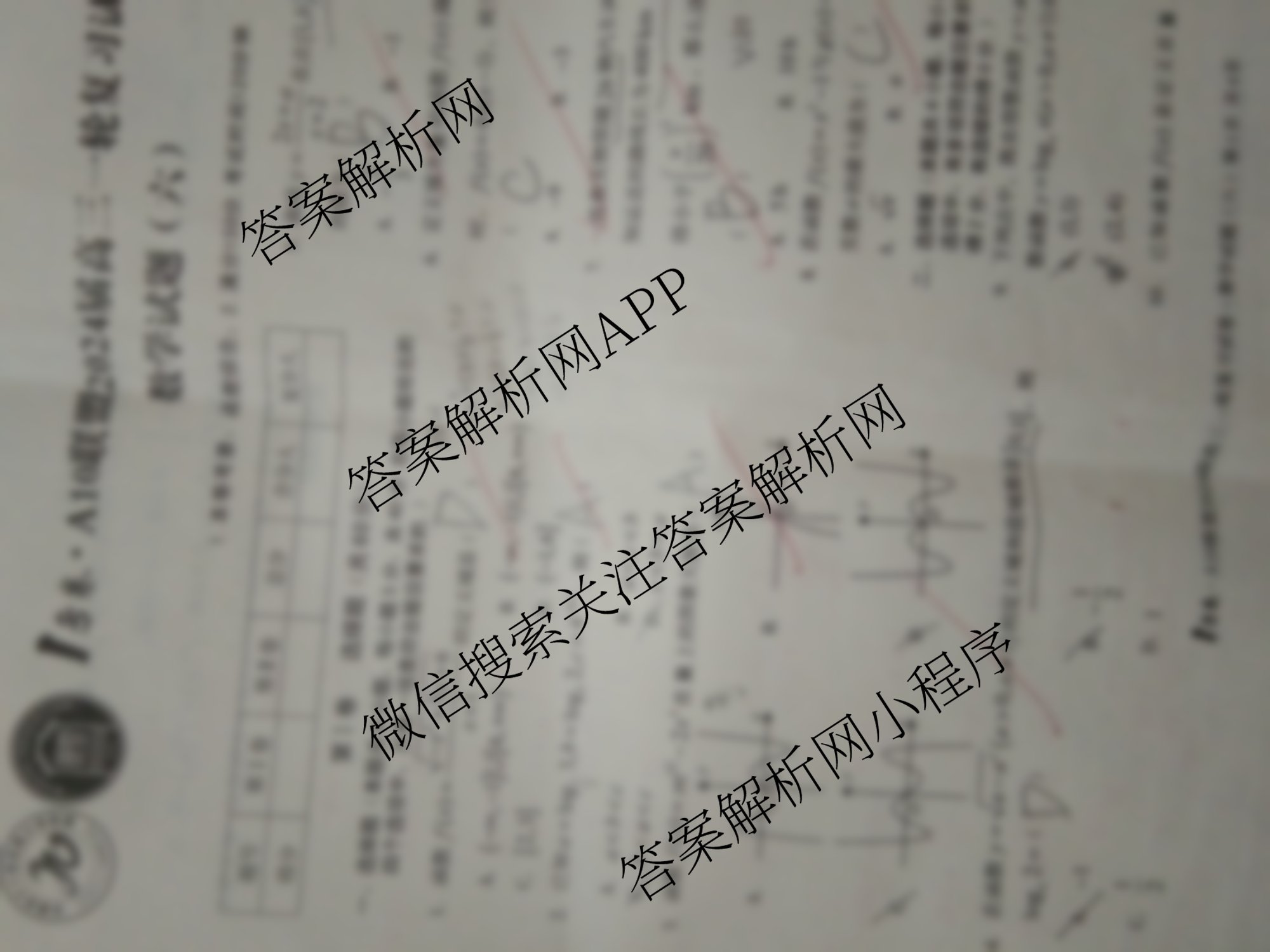 1号卷A10联盟2024届高三一轮复习试卷 数学(六)6试题