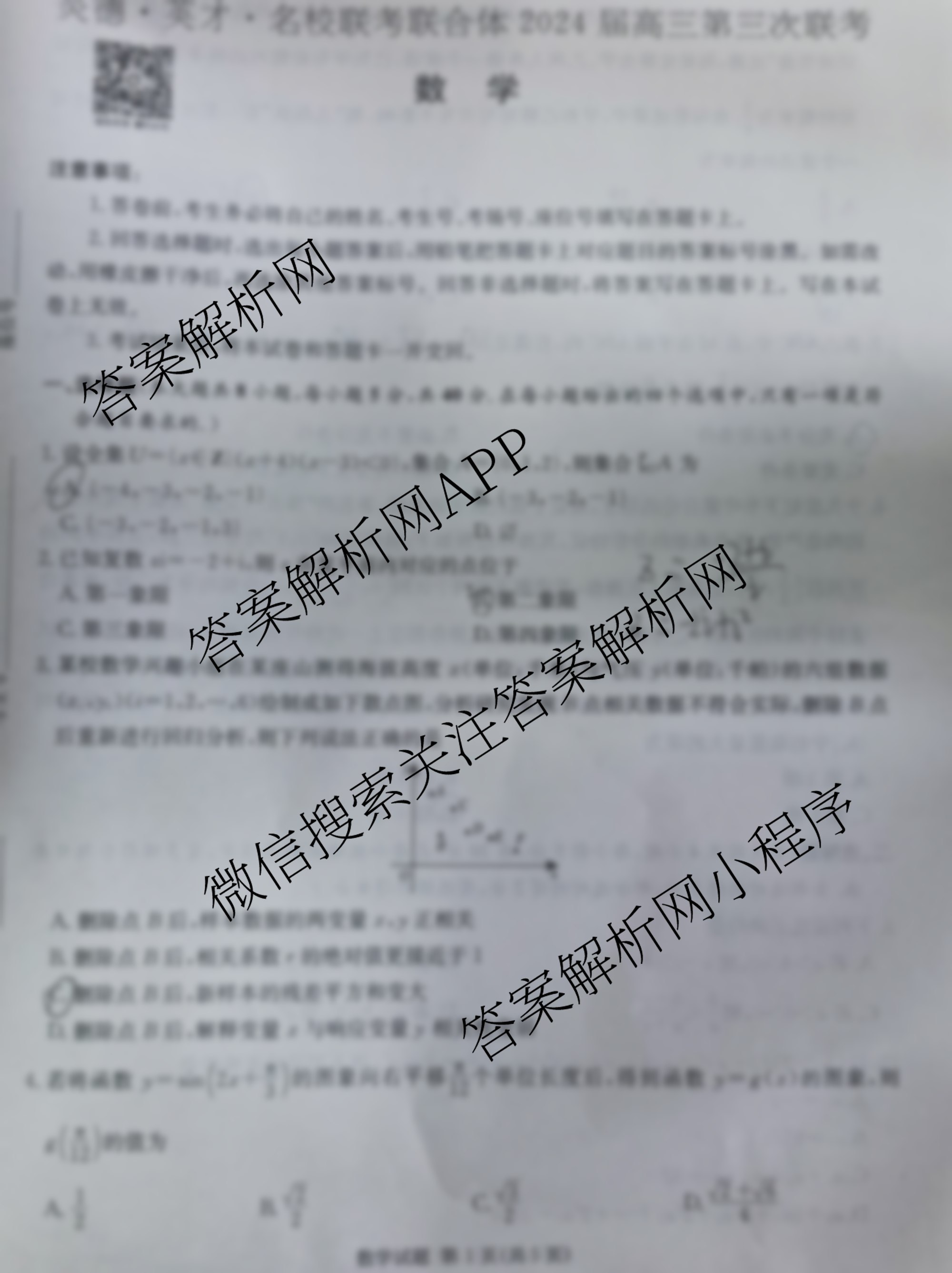 - (高三)炎德英才名校联考联合体2024届第三次联考数学试题