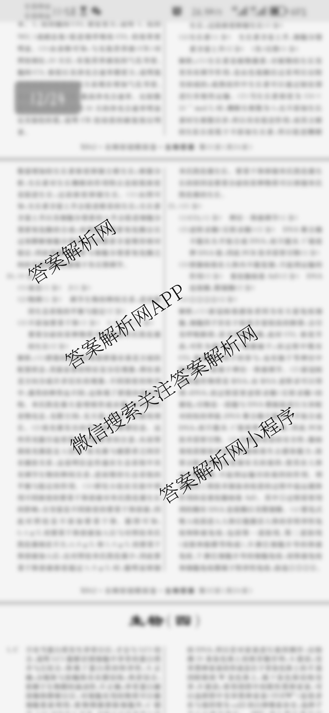 - 2024届[高三](总复习名师原创模拟)卷 理综(S4)(三)3答案