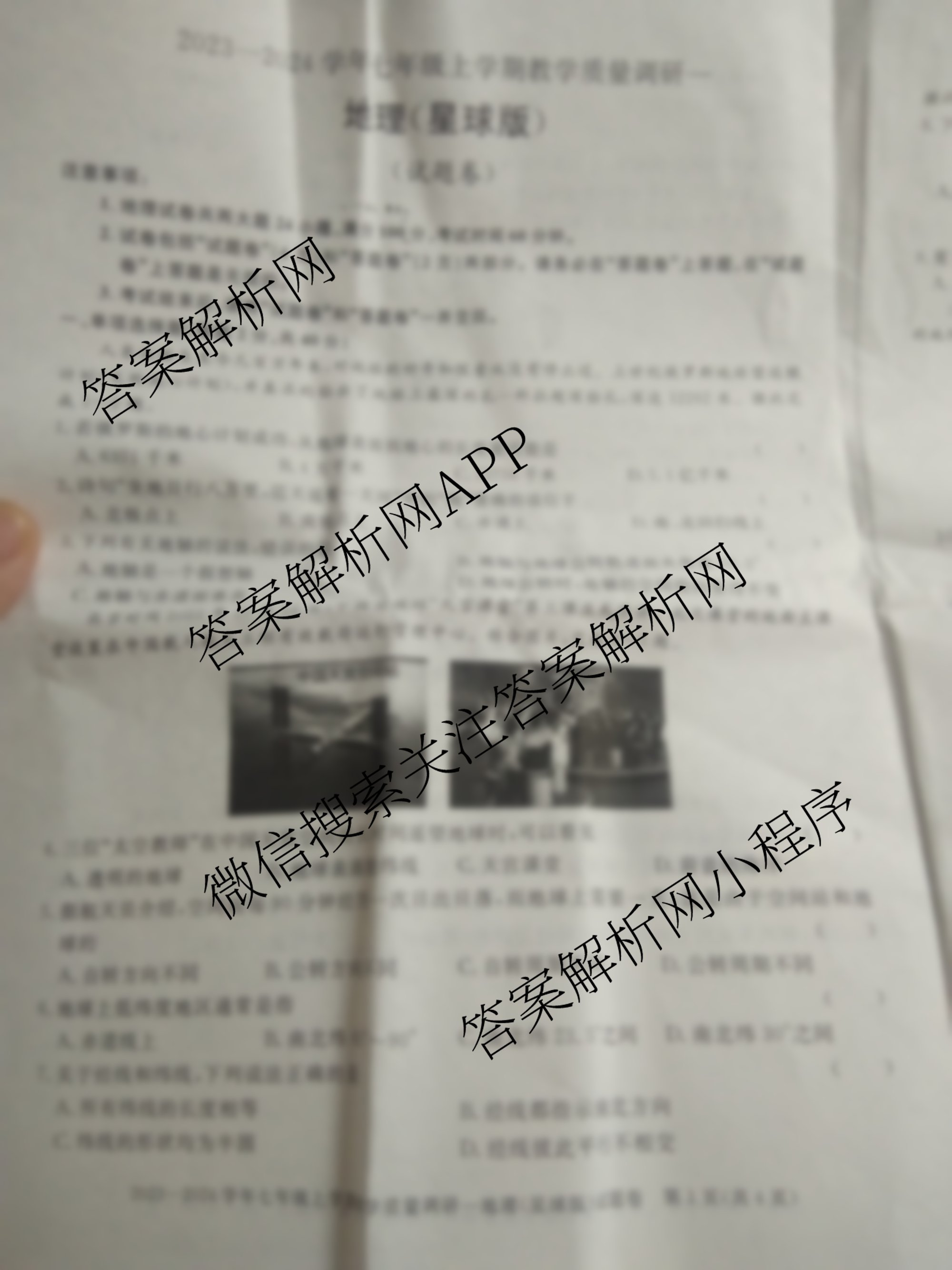 - 2023-2024安徽省学年[七年级]上学期教学质量调研一地理(星球版)试题