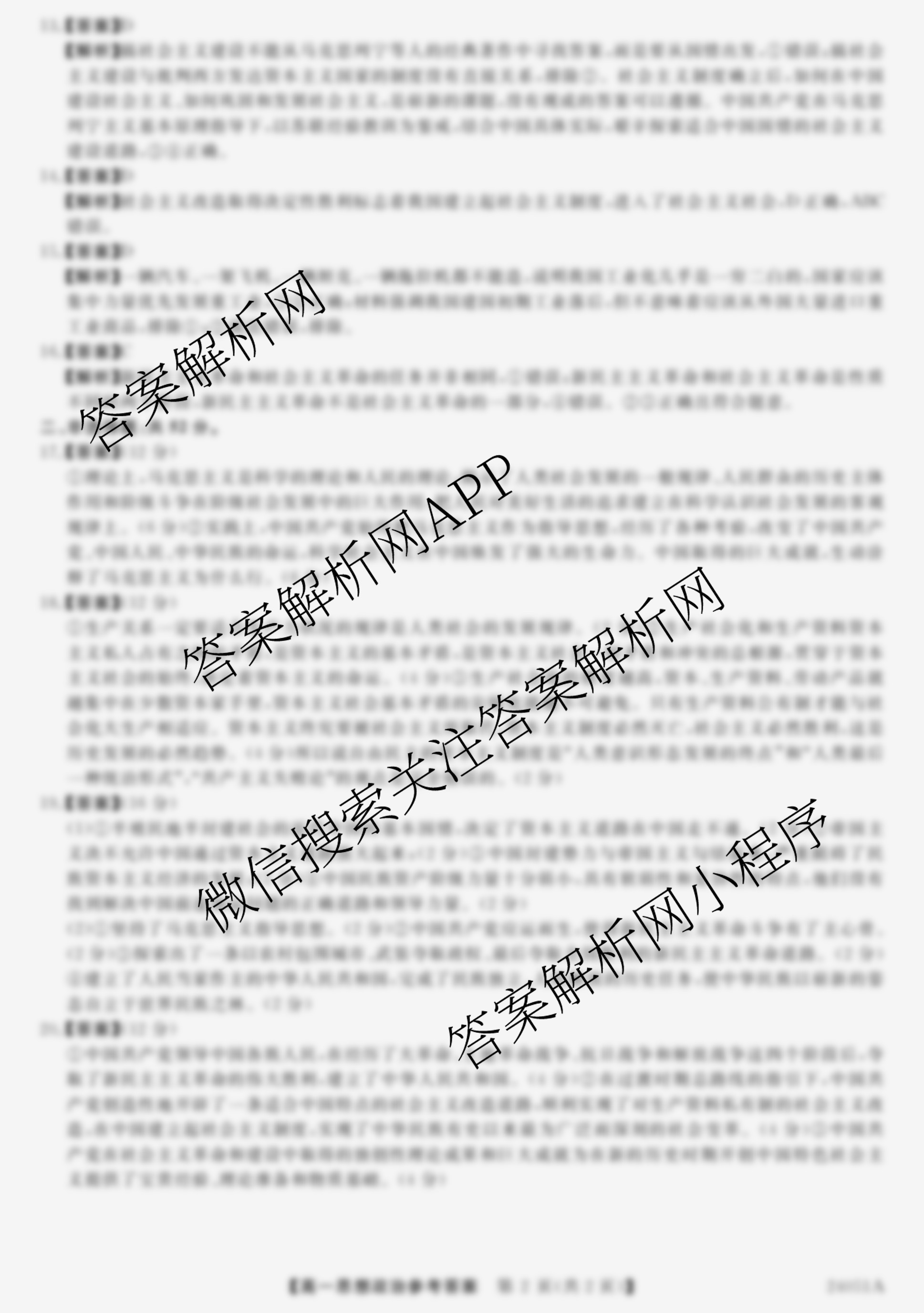 - 2023~2024(金科大联考)·学年度[高一]10月质量检测(24051A)政治答案