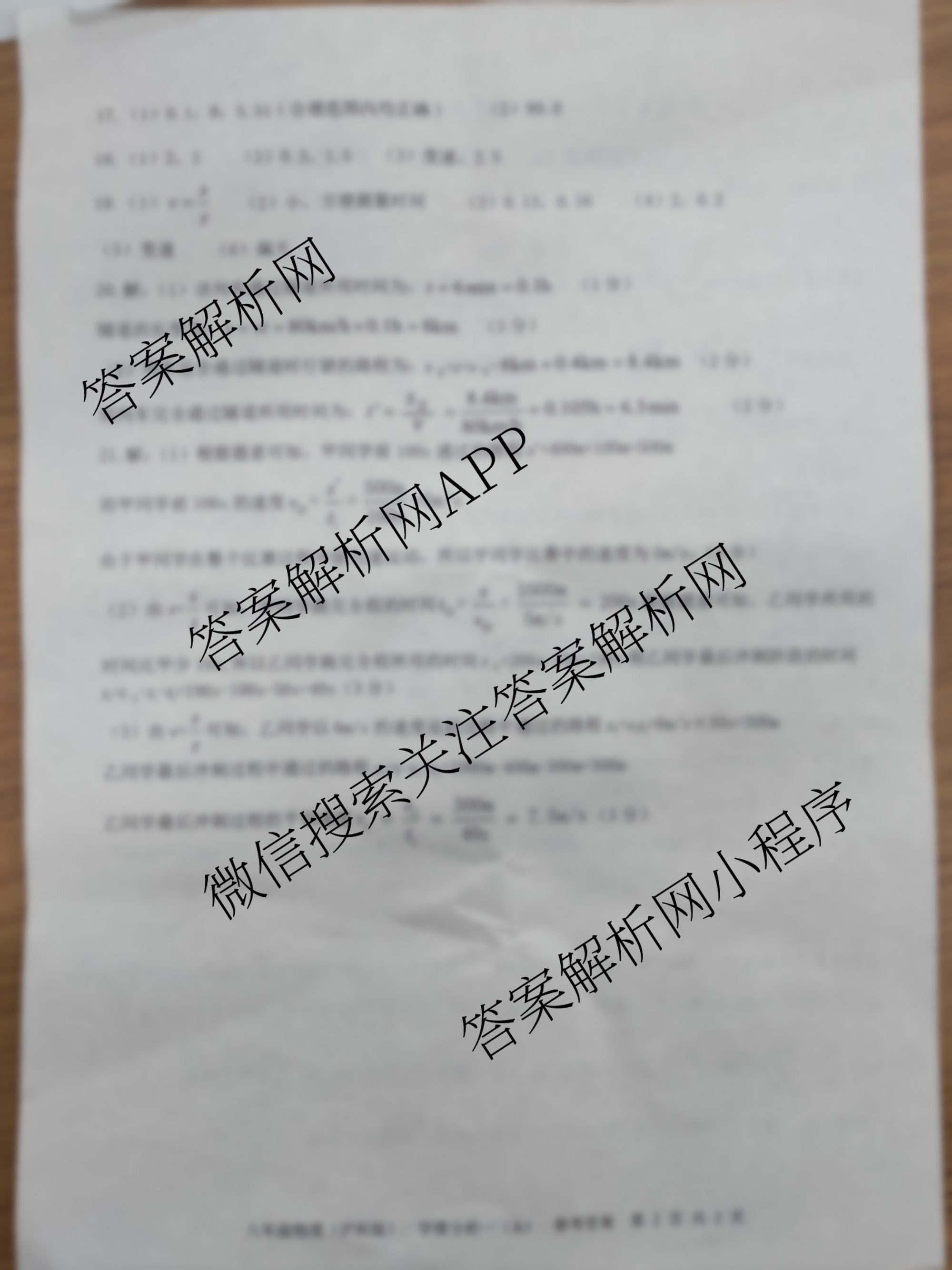 - 2023-2024八年级河南省学年第一学期学情分析一 物理(A沪科版)答案