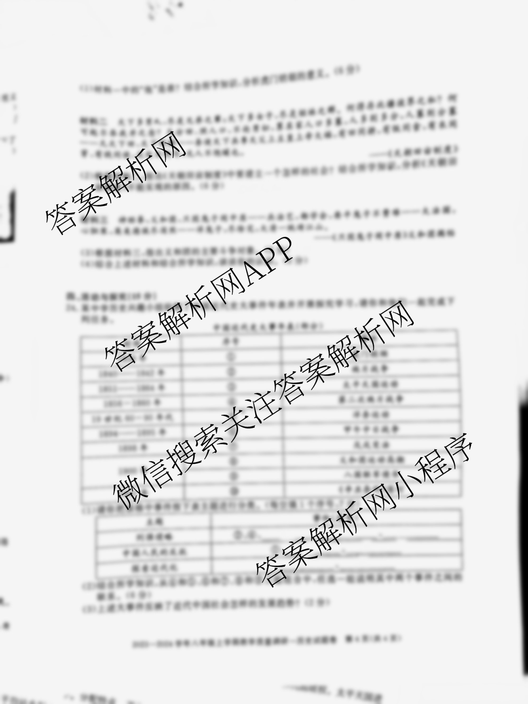 - (八年级)安徽省2023~2024学年上学期教学质量调研一历史答案