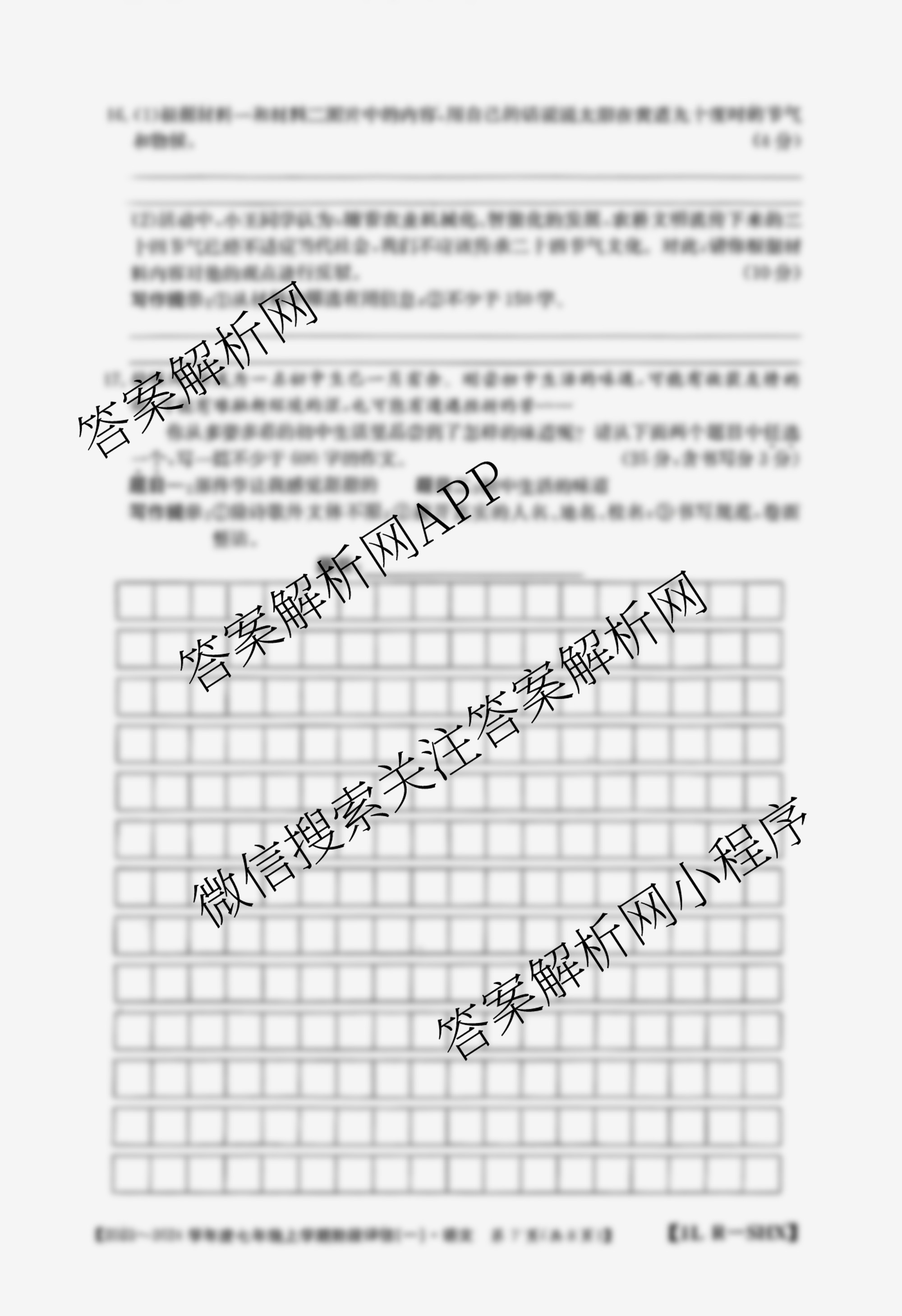 - 2023~2024山西省学年度(七年级)上学期阶段评估(一)[1L R-SHX]语文(R)答案