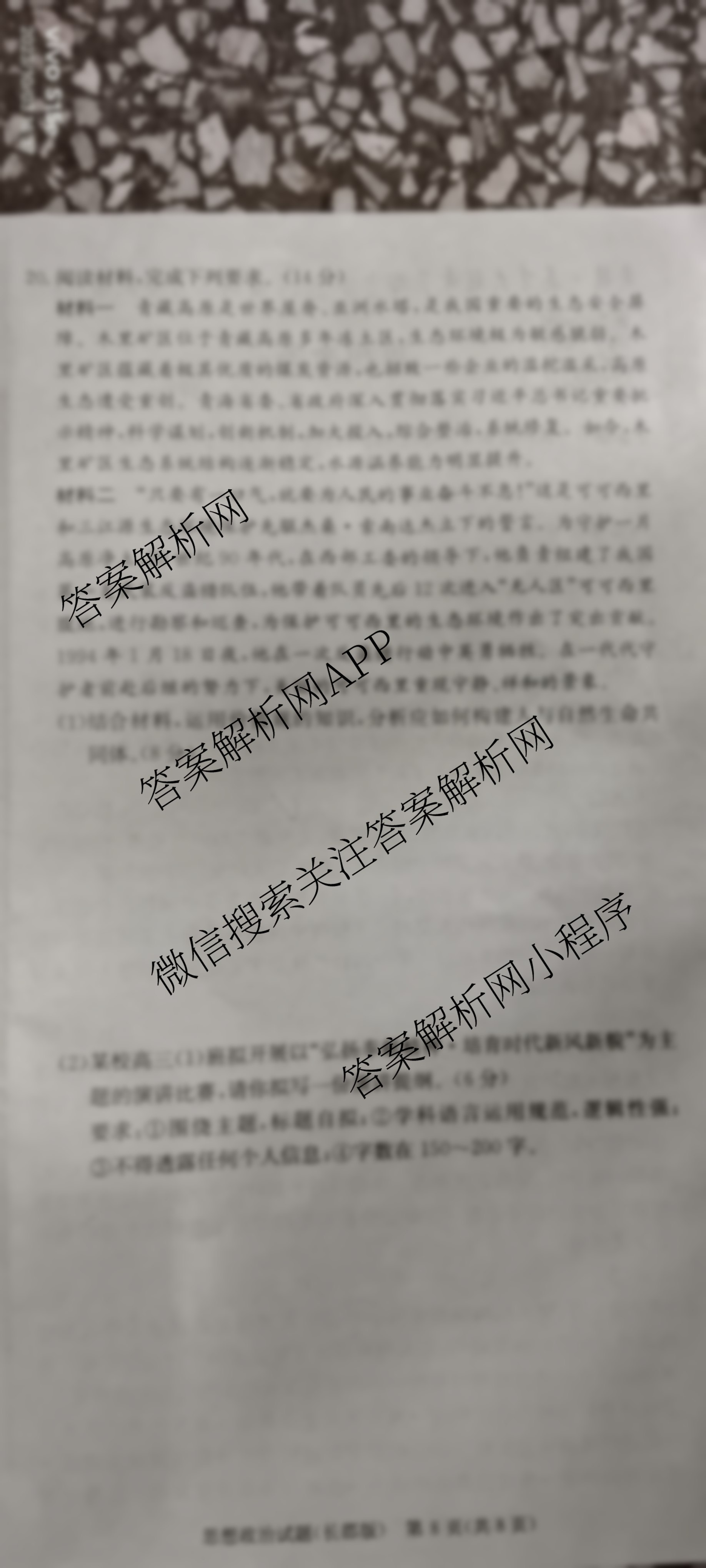 - 2024届[炎德英才大联考]·长郡中学(高三)月考试卷(二)政治答案
