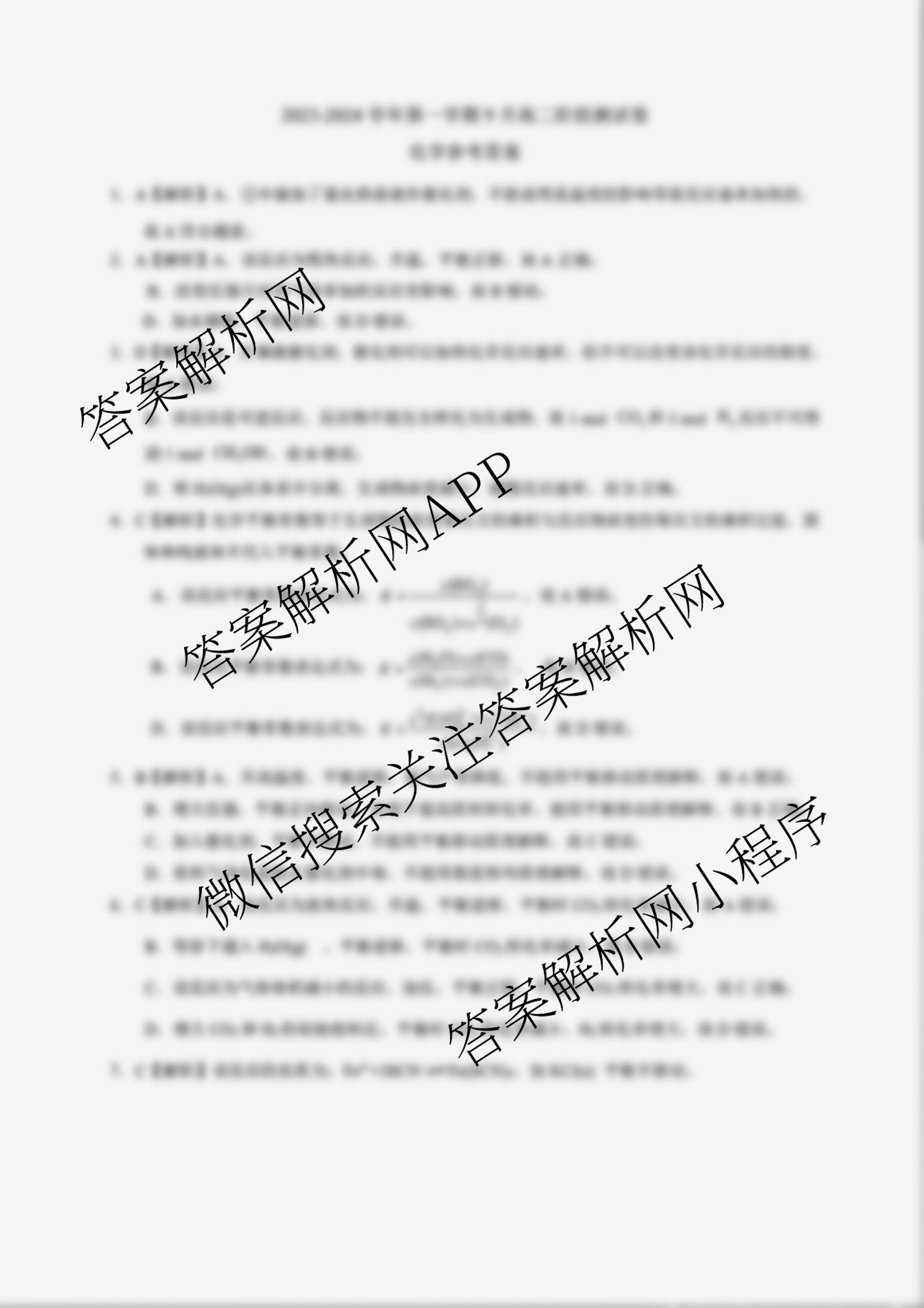 - 高二[NT]2023~2024学年第一学期9月阶段测试卷化学答案