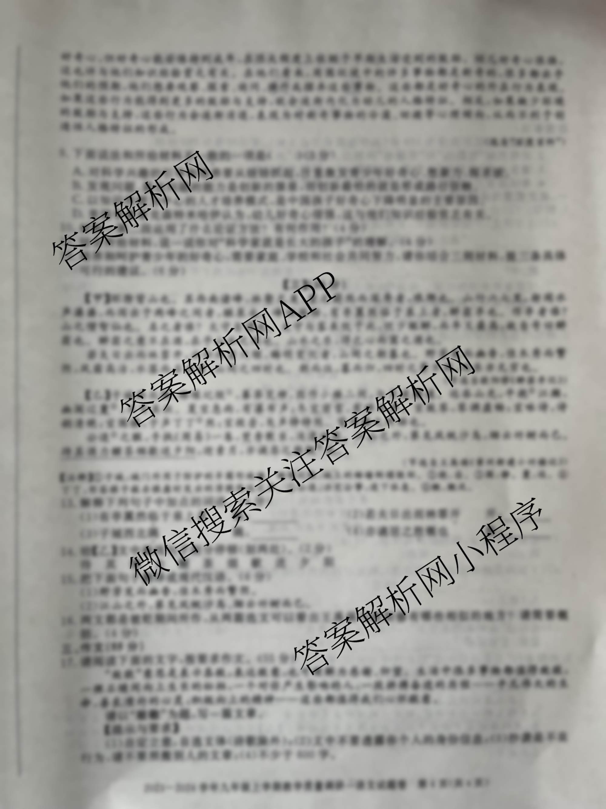 - 2023~2024[九年级]安徽省学年上学期教学质量调研一语文试题
