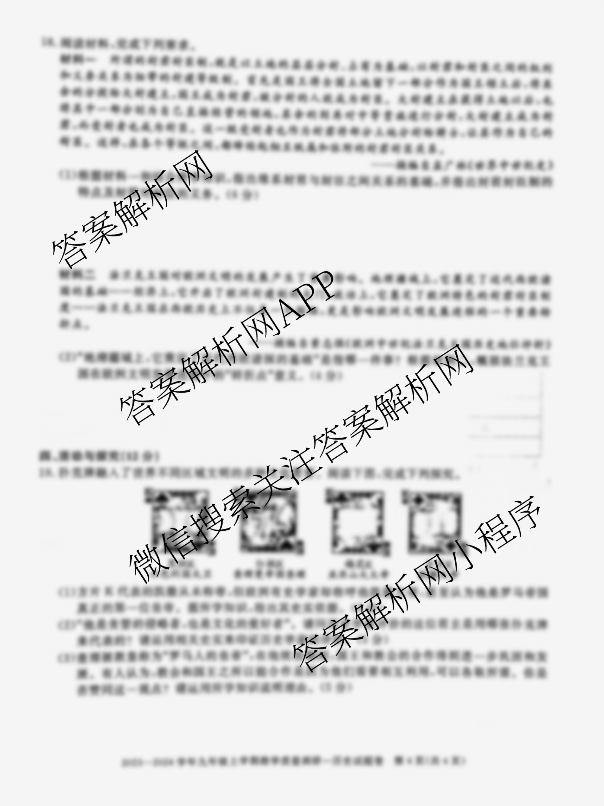 - 2023~2024(九年级)安徽省学年上学期教学质量调研一历史答案
