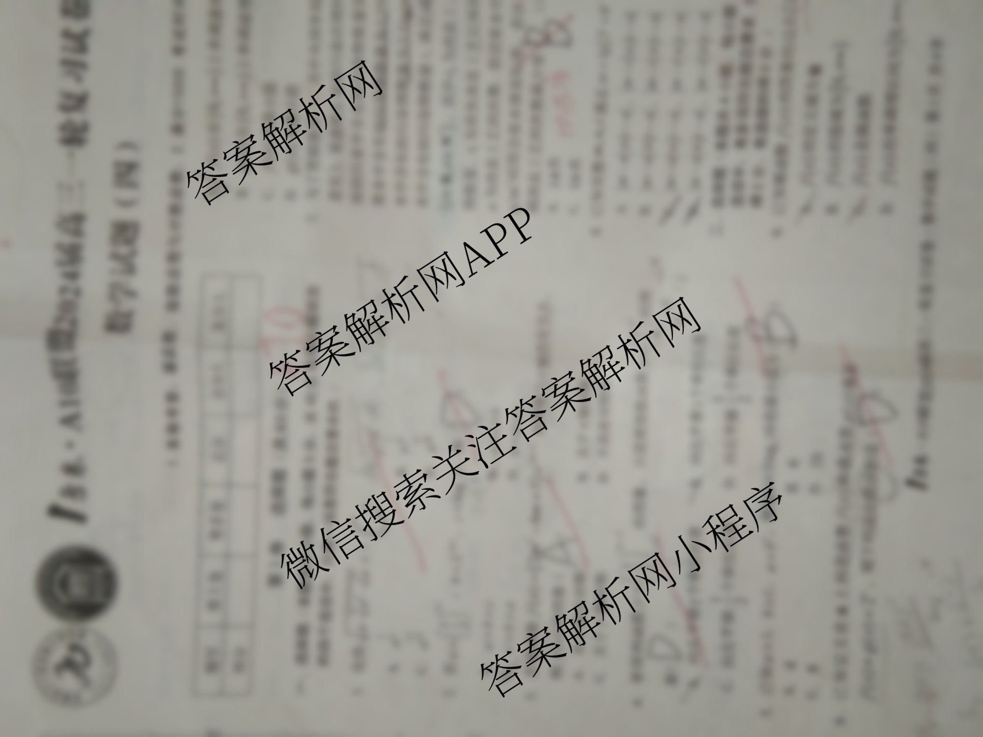 1号卷A10联盟2024届高三一轮复习试卷 数学(四)4试题
