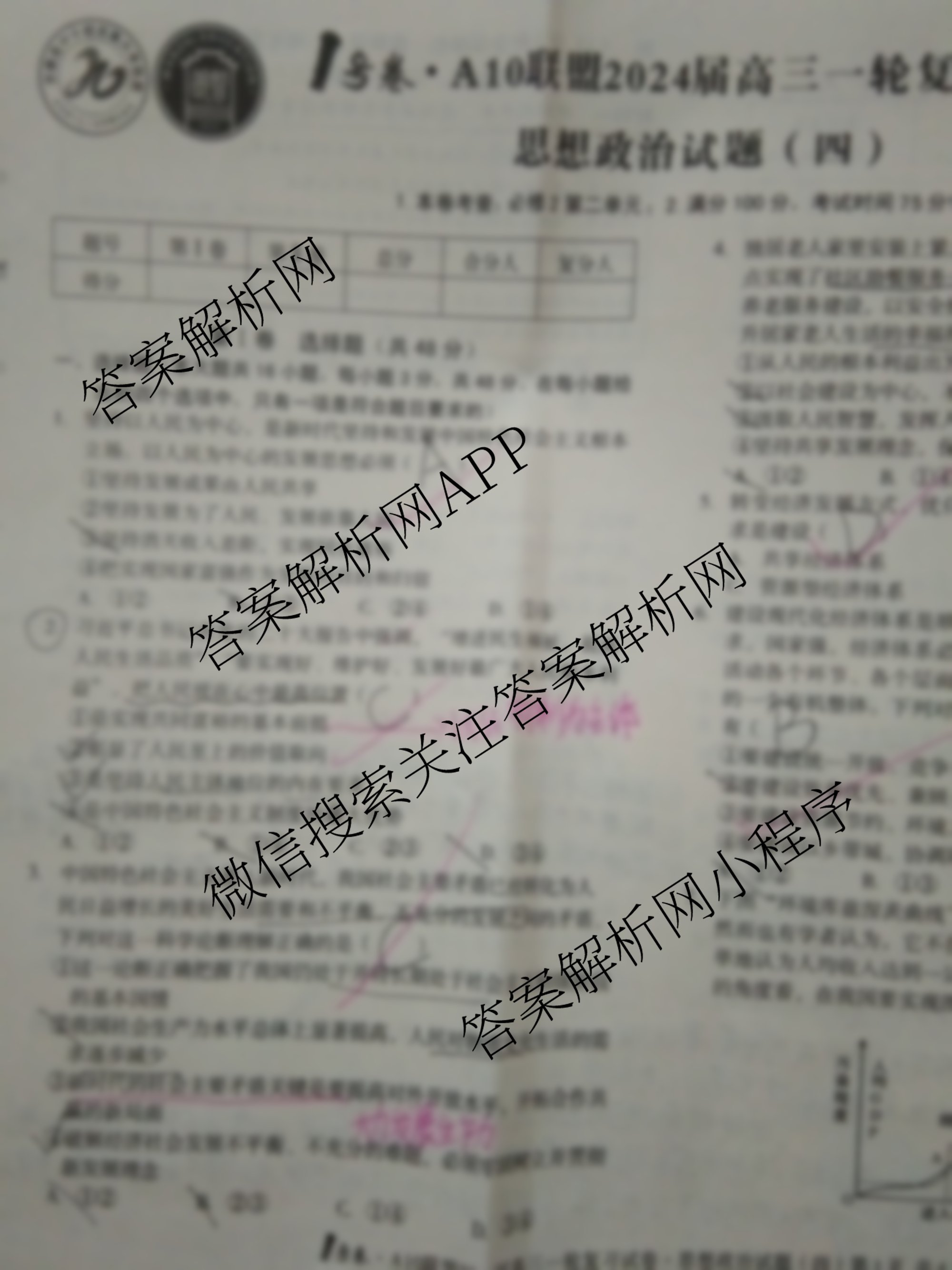 1号卷·A10联盟2024届高三一轮复习试卷 政治(四)4试题,目前学英语报答案已经汇总了1号卷·A10联盟2024届高三一轮复习试卷 政治(四)4试题的各科答案和试卷,获取更多1号卷答案解析,请在关注本站。