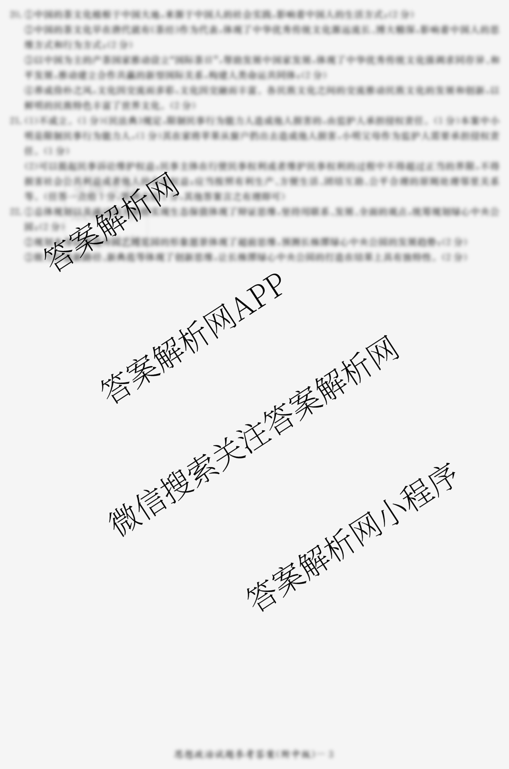 - 2024届(高三)[炎德英才大联考]湖南师大附中月考试卷(一)政治答案