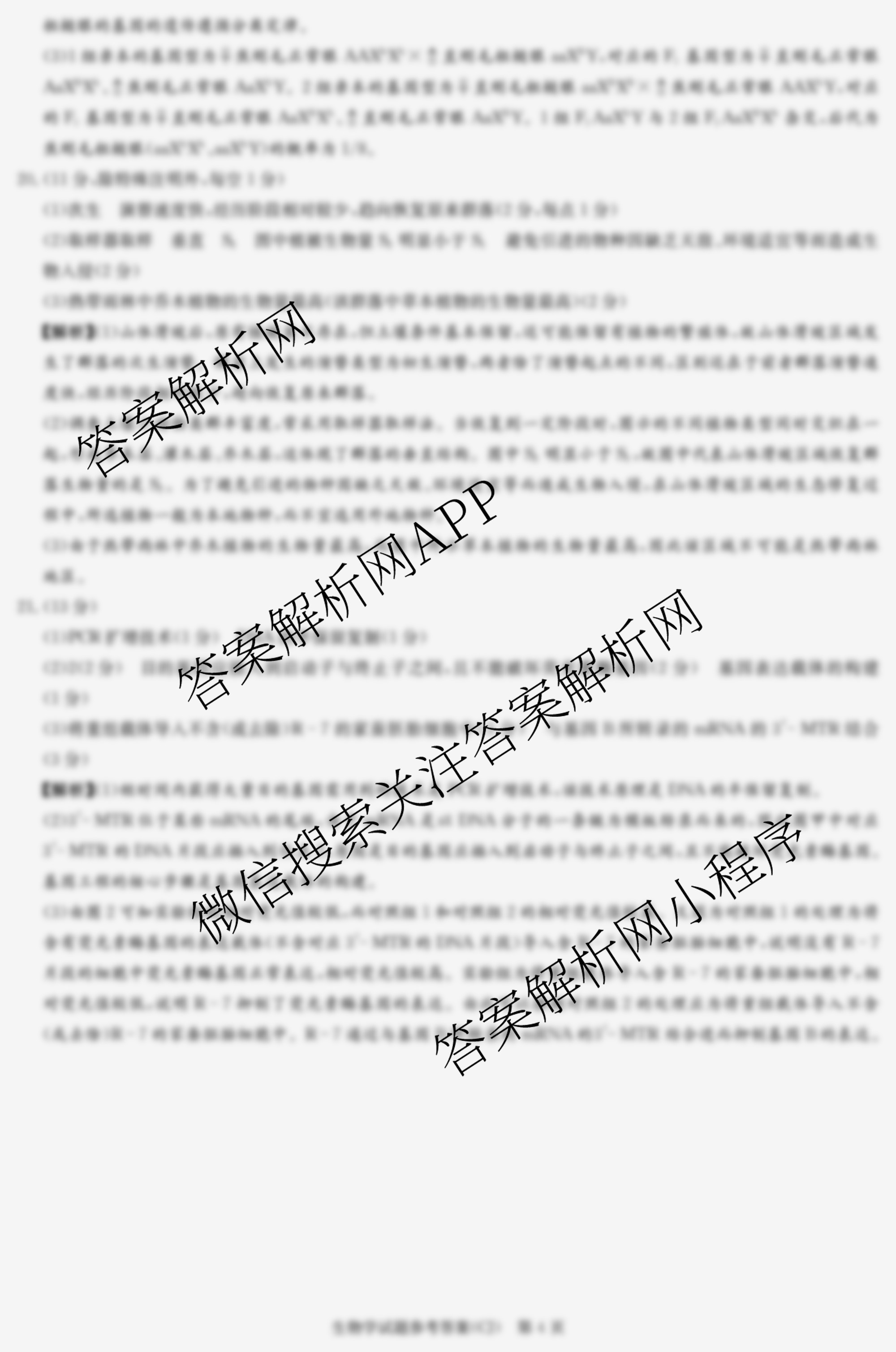 - 2024届(炎德英才大联考)·[高三]暑假作业检测试卷生物答案