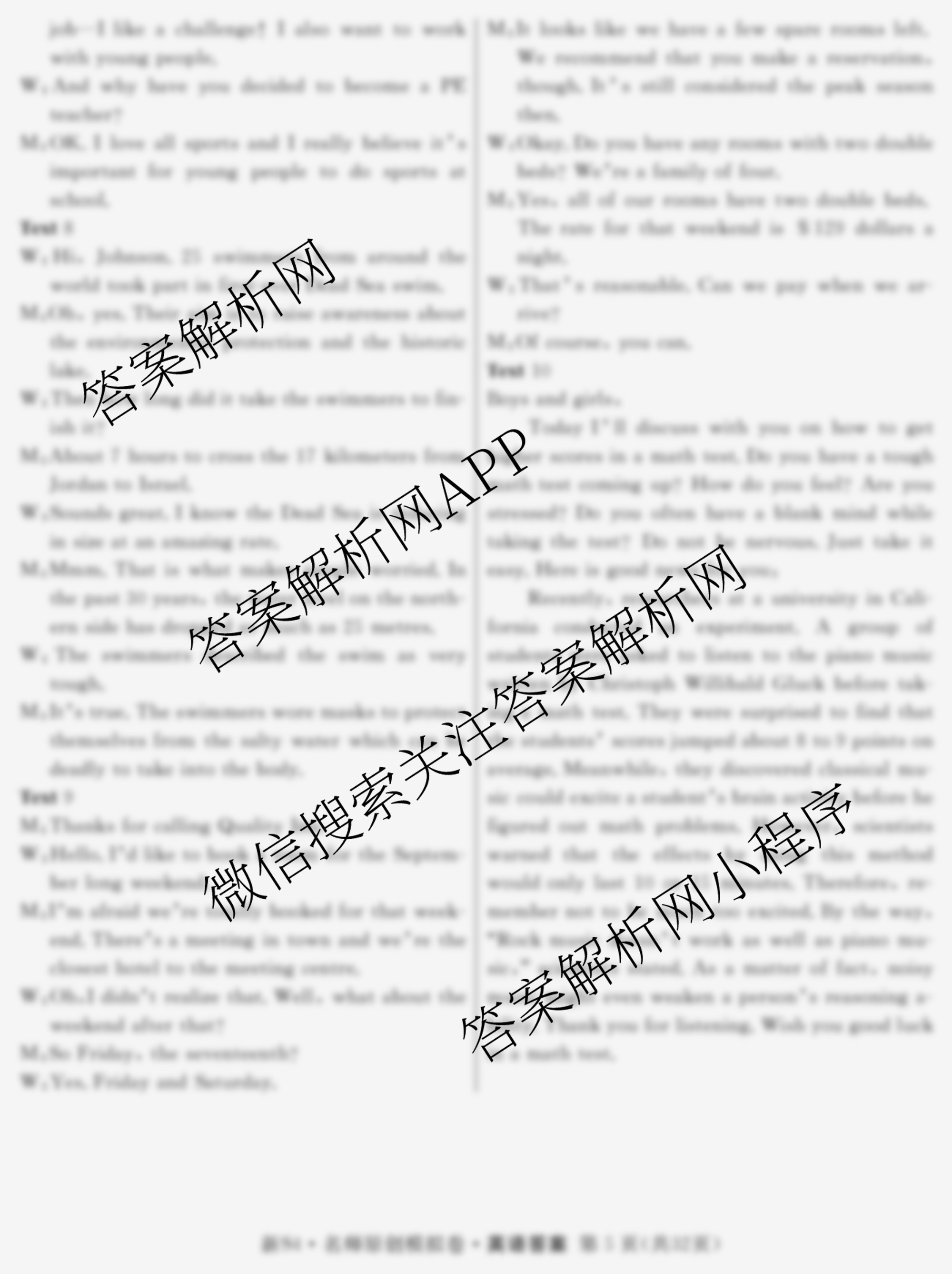 - 2024届(高三)总复习名师原创模拟 英语(S4)(一)1答案