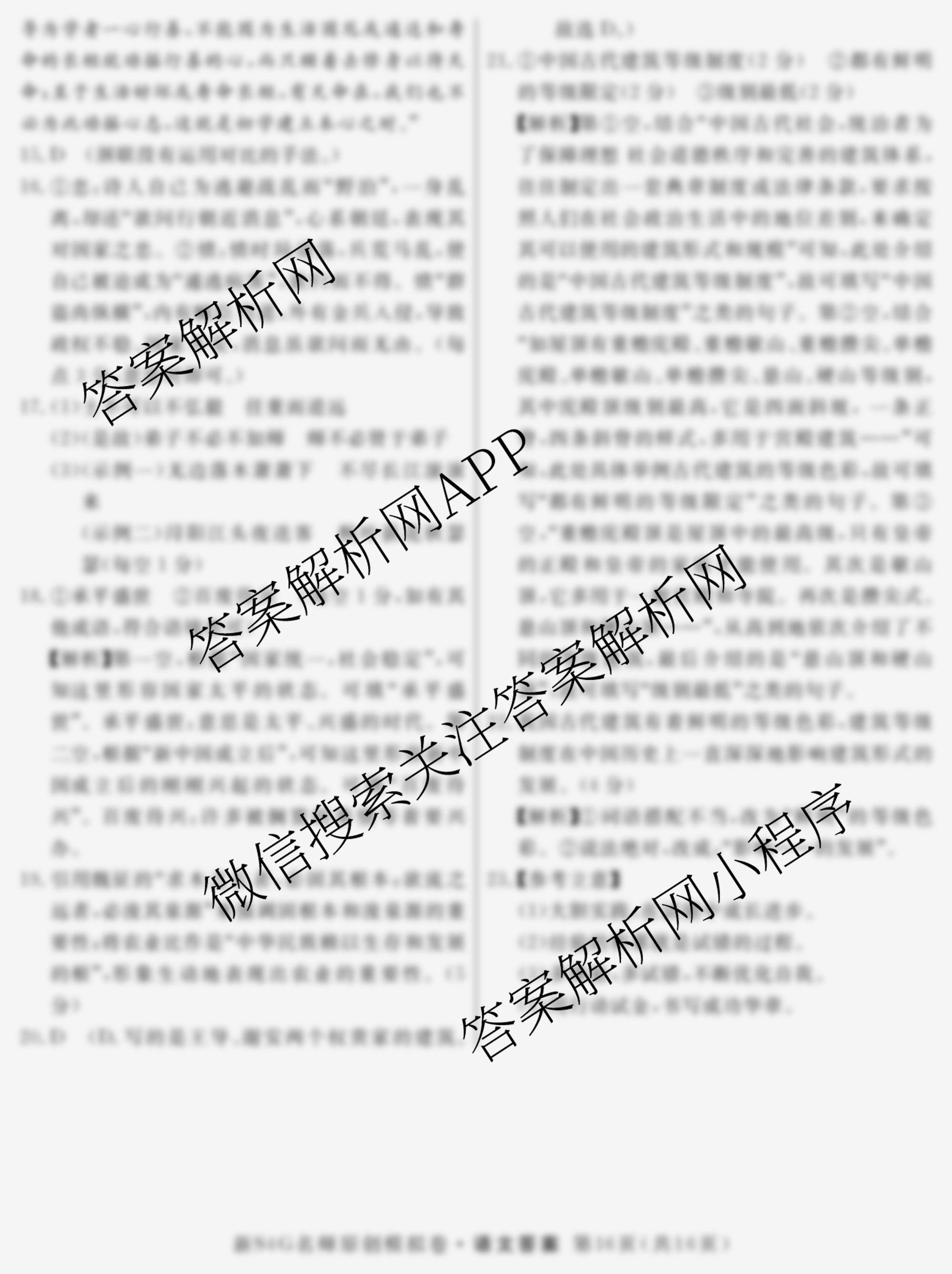 - 2024届高三(总复习名师原创模拟) 语文(S4)(六)6答案