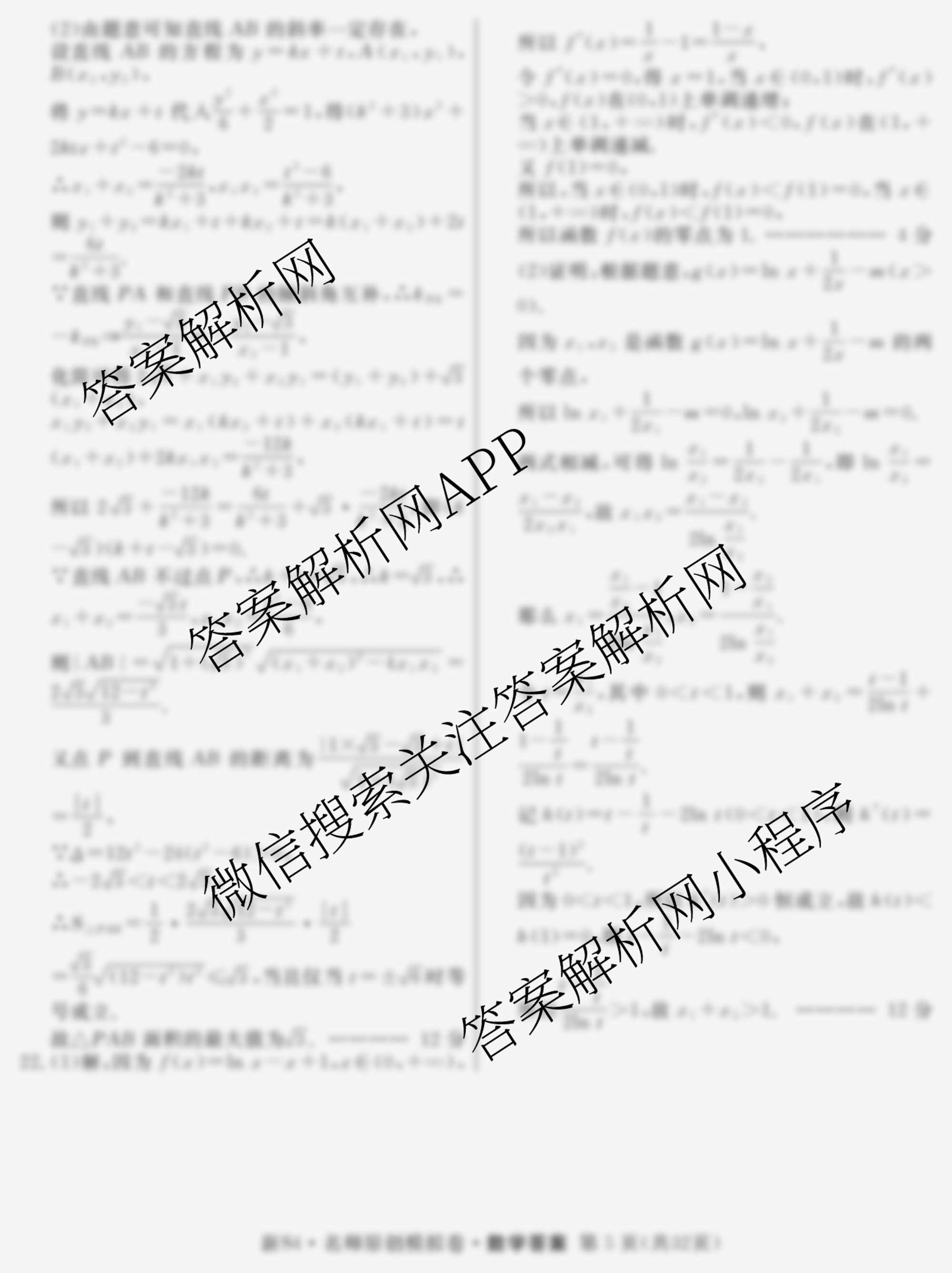 - 2024届高三(总复习·名师原创模拟) 数学(新S4)(一)1答案