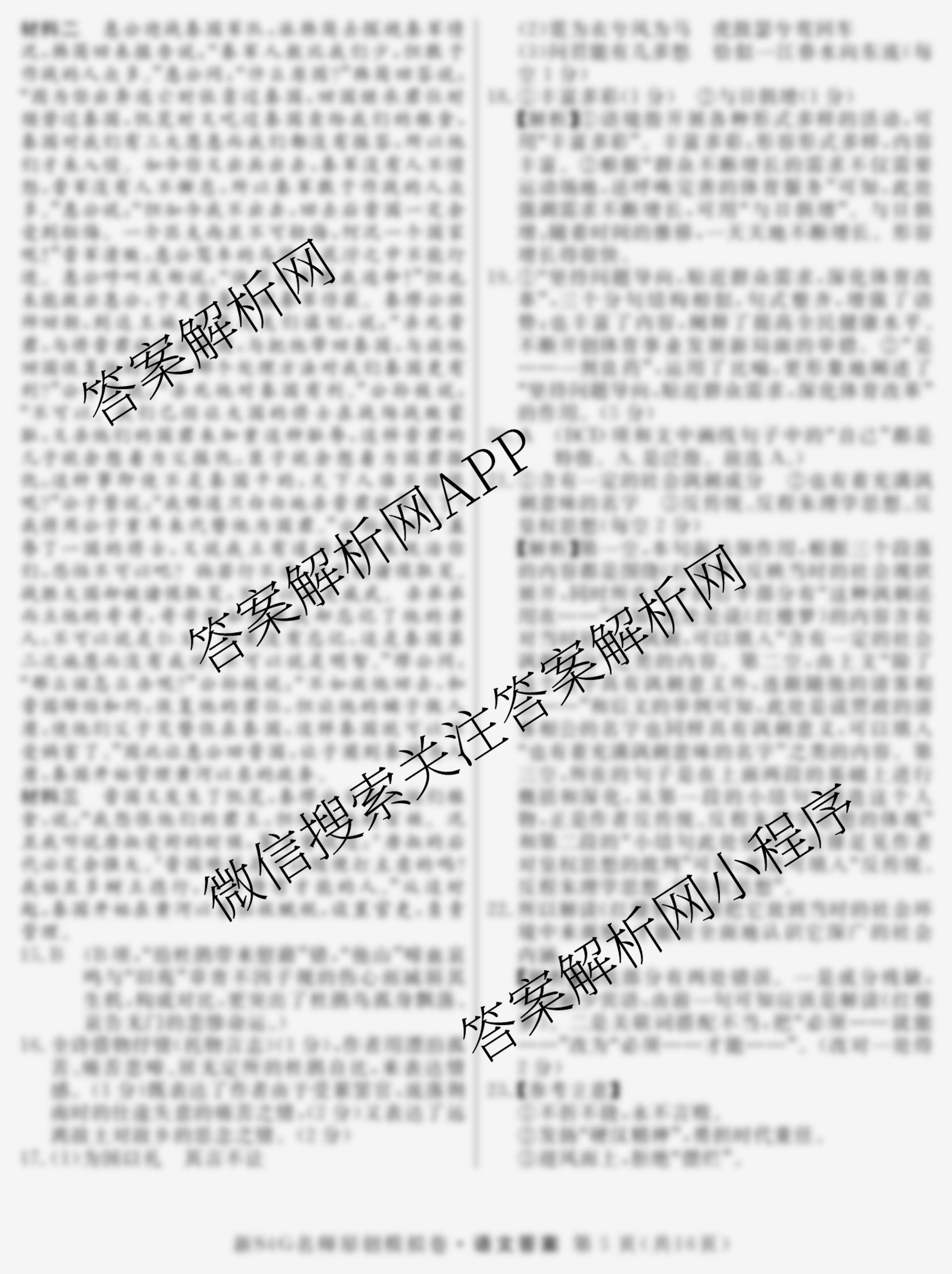 - 2024届((高三)总复习·名师原创模拟) 语文(新S4G)(二)2答案