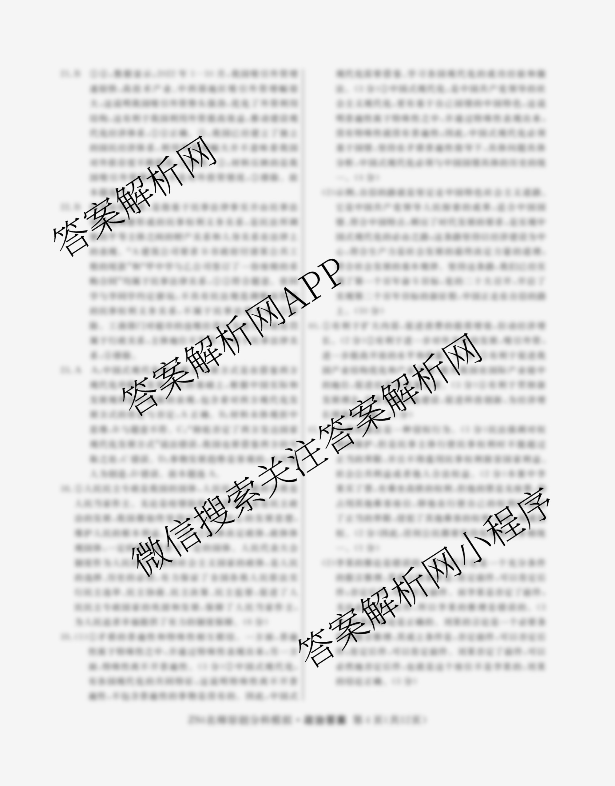 - 2024届[高三]总复习·名师原创分科模拟 政治(ZS4)(八)8答案