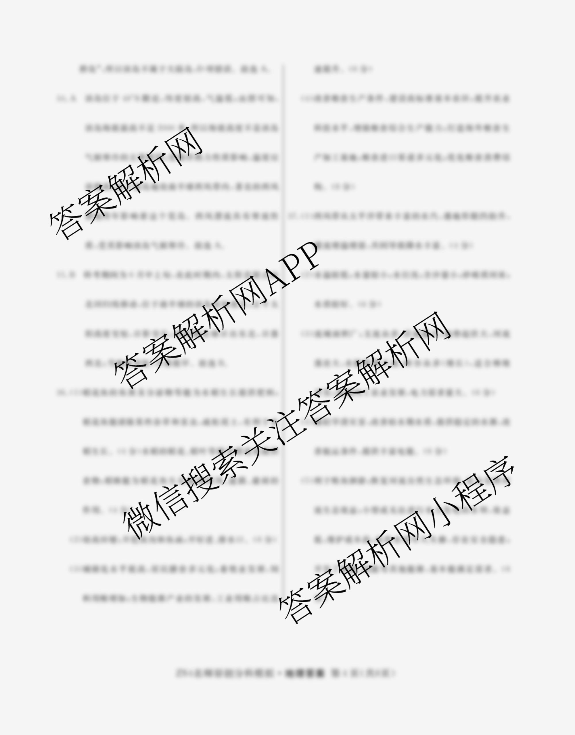 - (高三)2024届总复习名师原创分科模拟(八)8文综(S4)答案