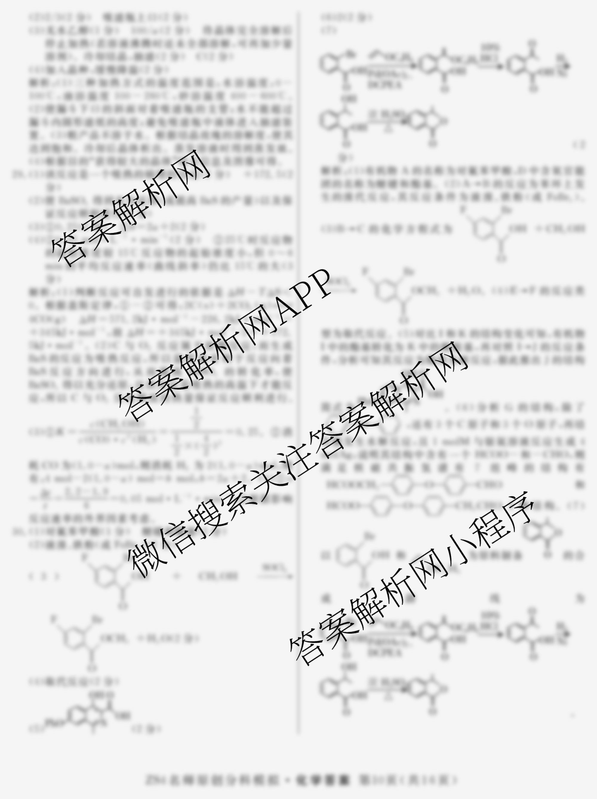 2024届高三总复习·名师原创分科模拟 化学(ZS4)(四)4答案