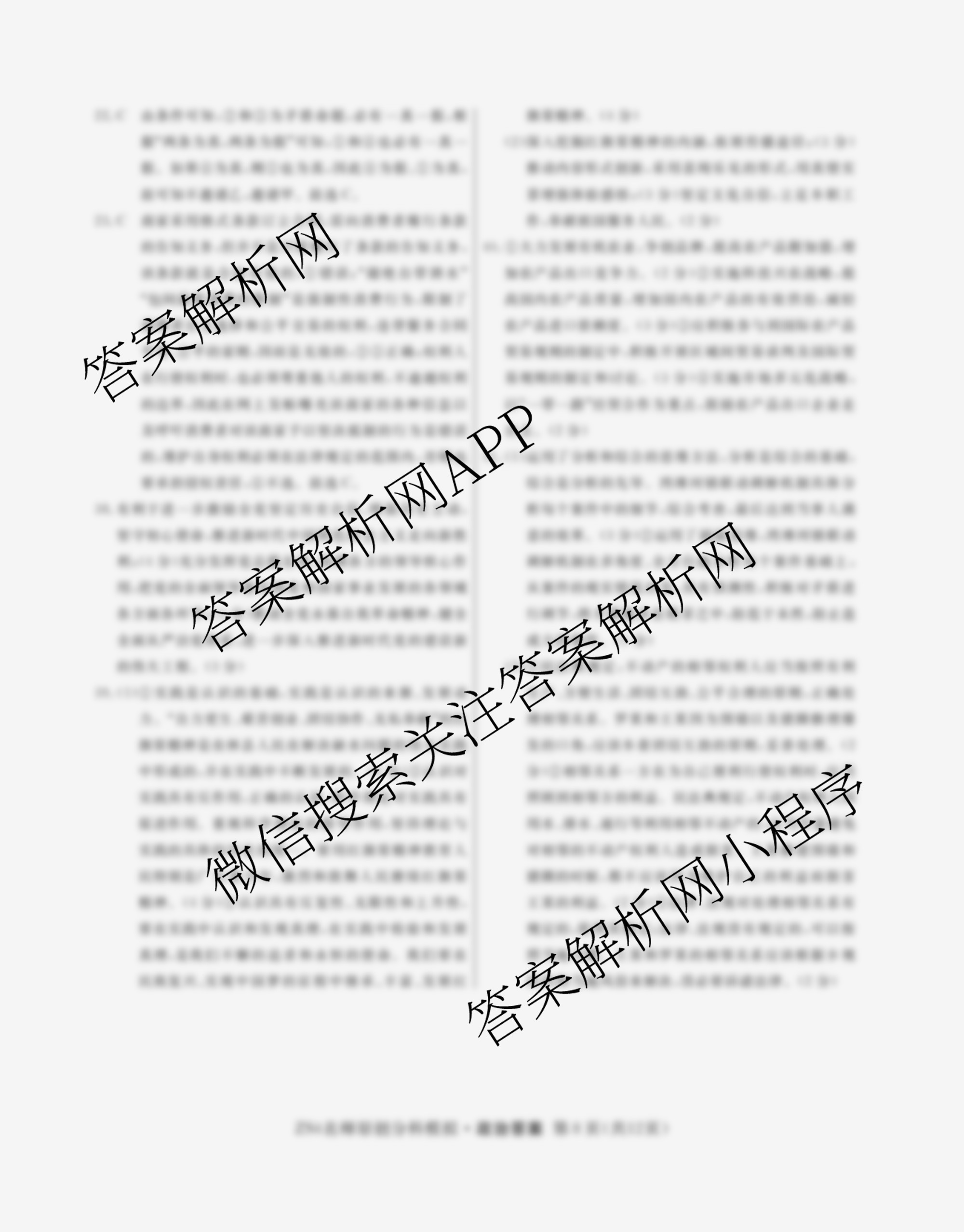 2024届(高三)总复习·名师原创分科模拟 政治(ZS4)(四)4答案