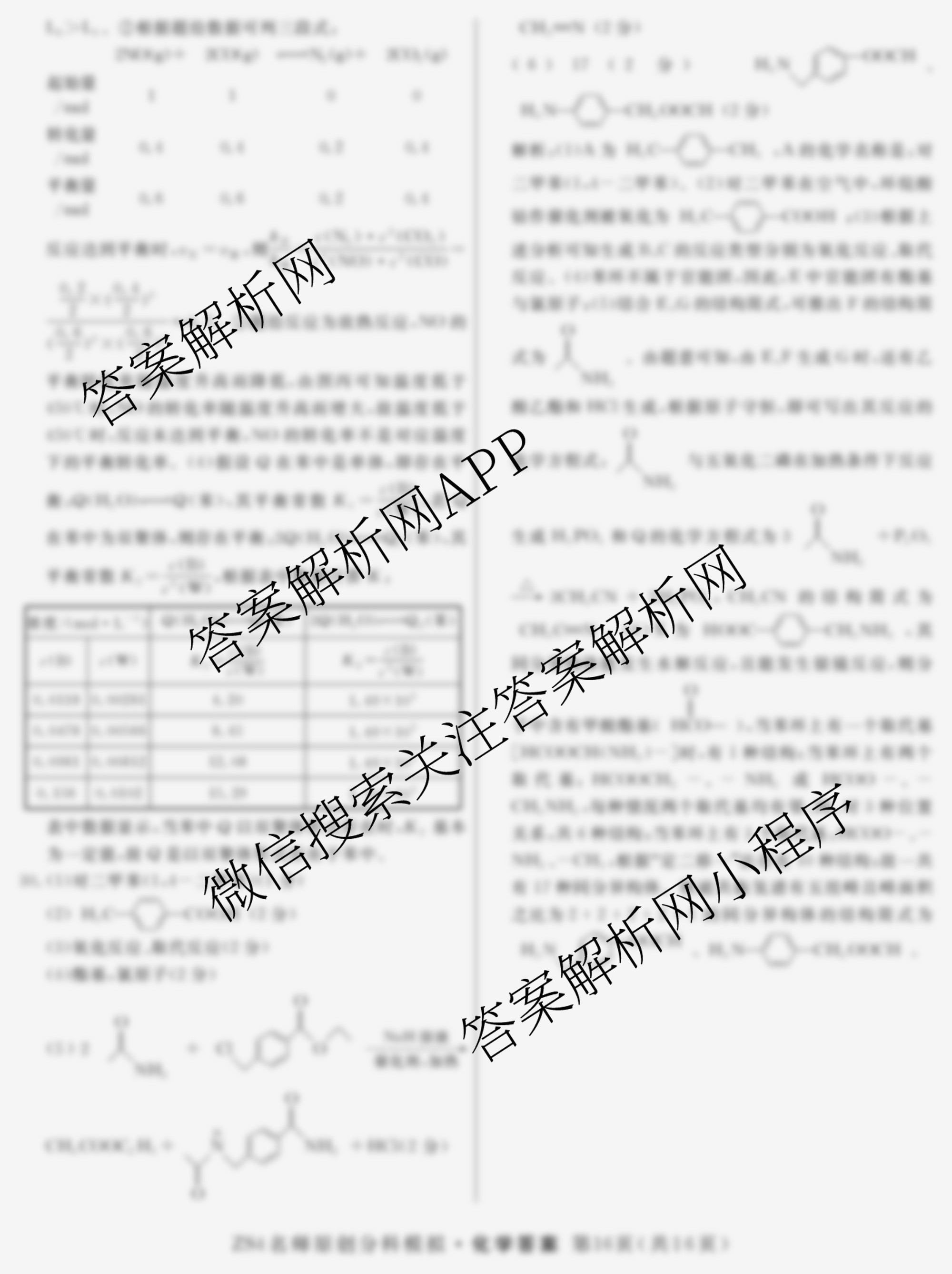 - (高三)2024届总复习名师原创分科模拟 化学(ZS4)(六)6答案