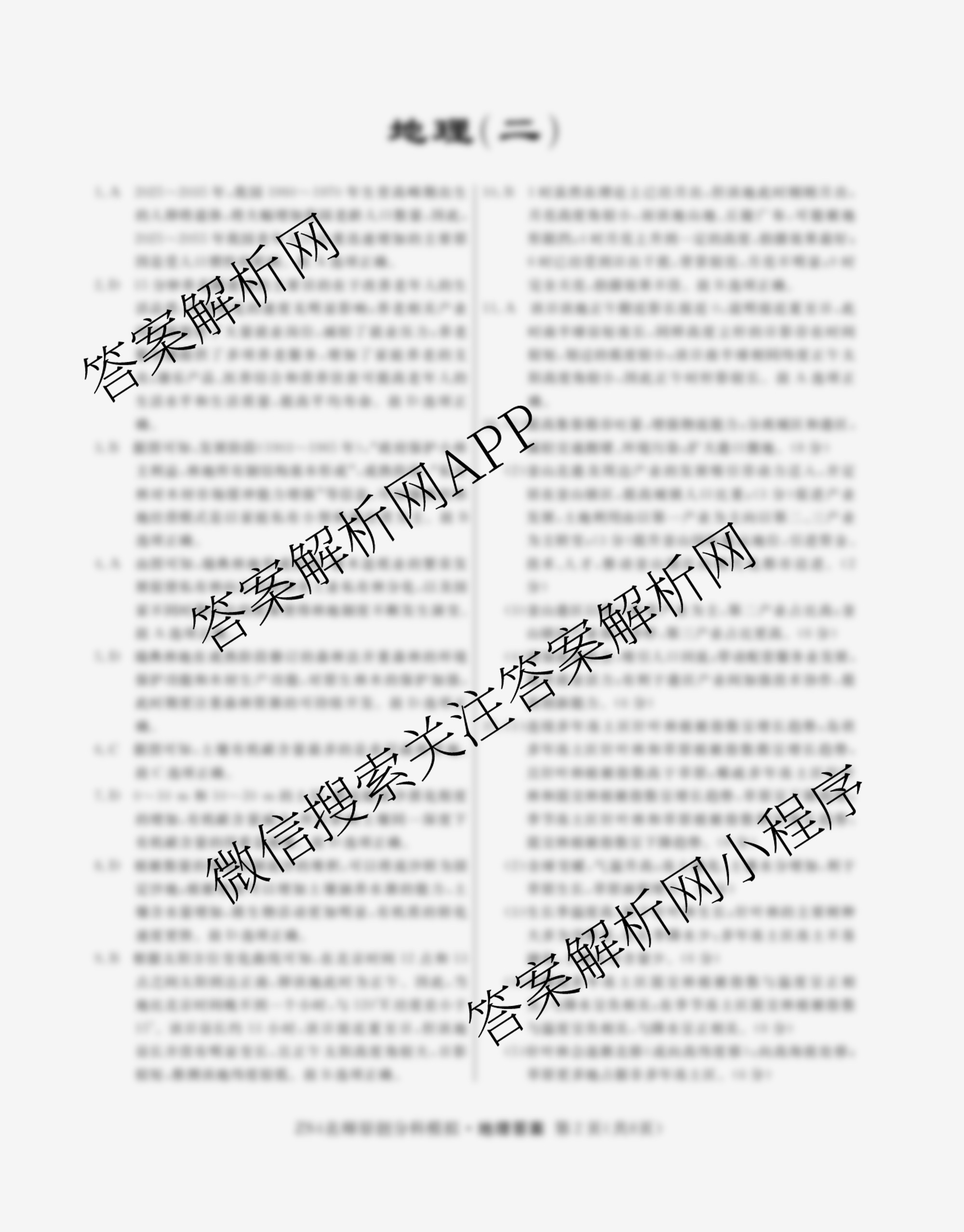 - (高三)2024届总复习名师原创分科模拟 地理(ZS4)(二)2答案