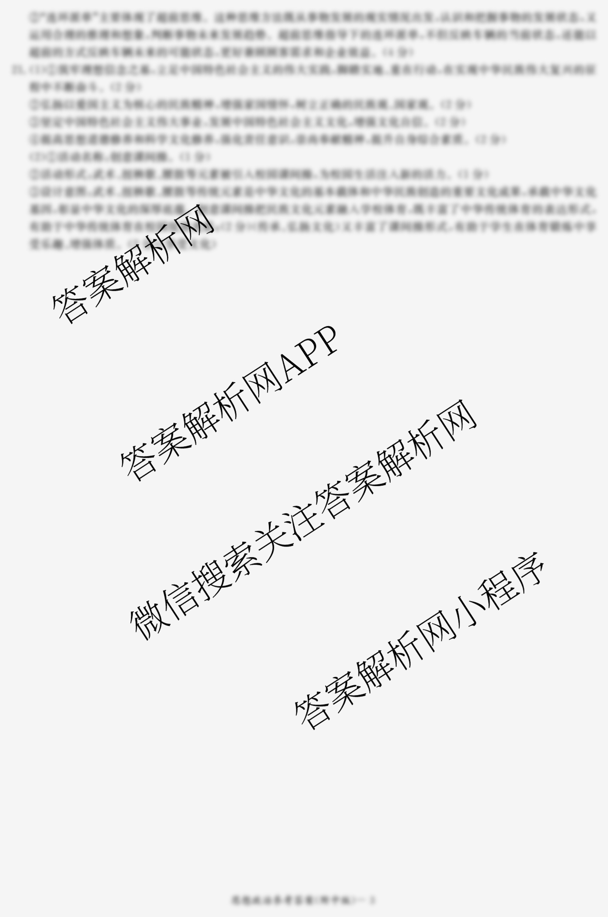(高三)湖南师大附中2021级摸底考试政治答案