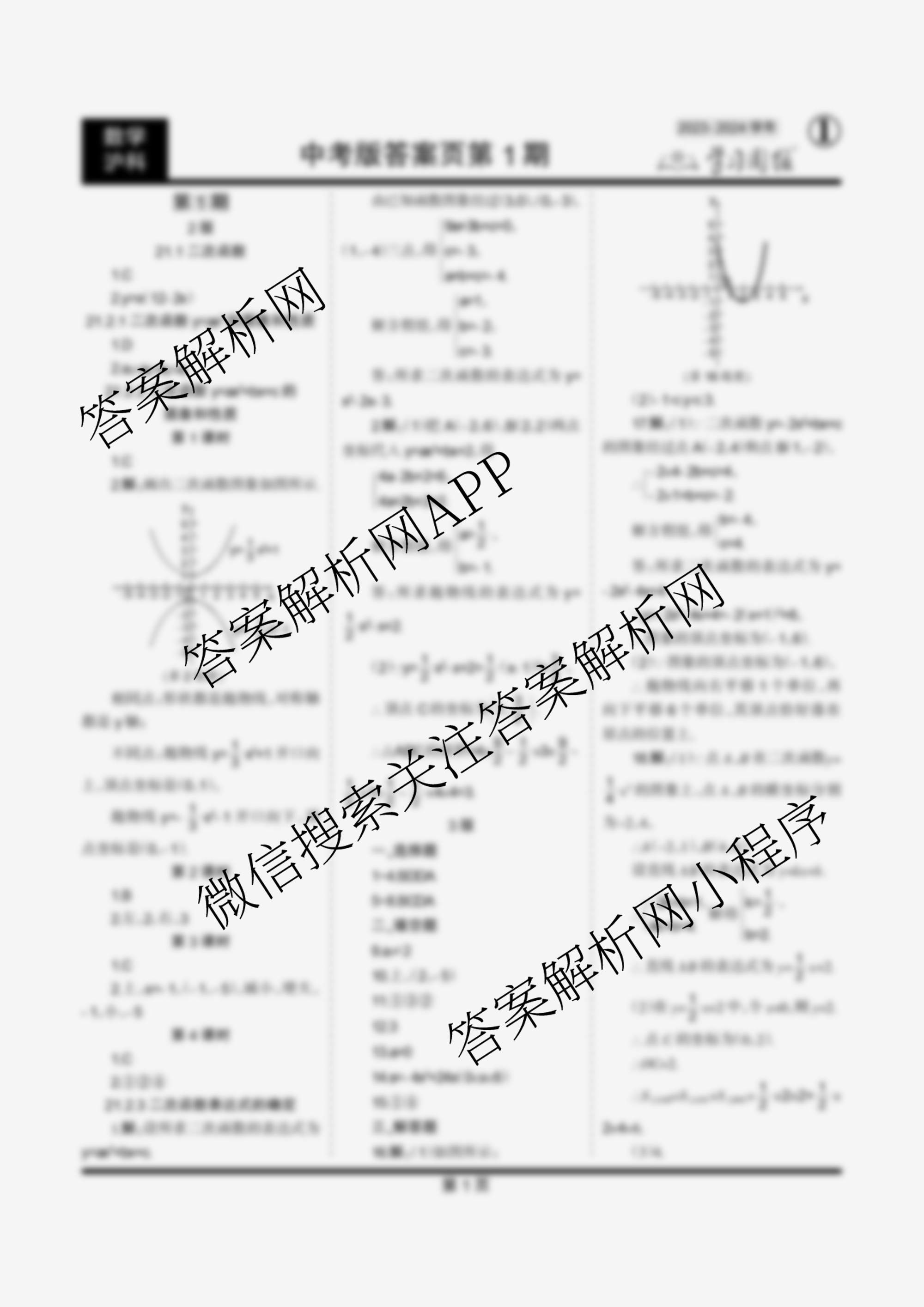 2023-2024 学习周报 数学 中考版(沪科)第1期答案