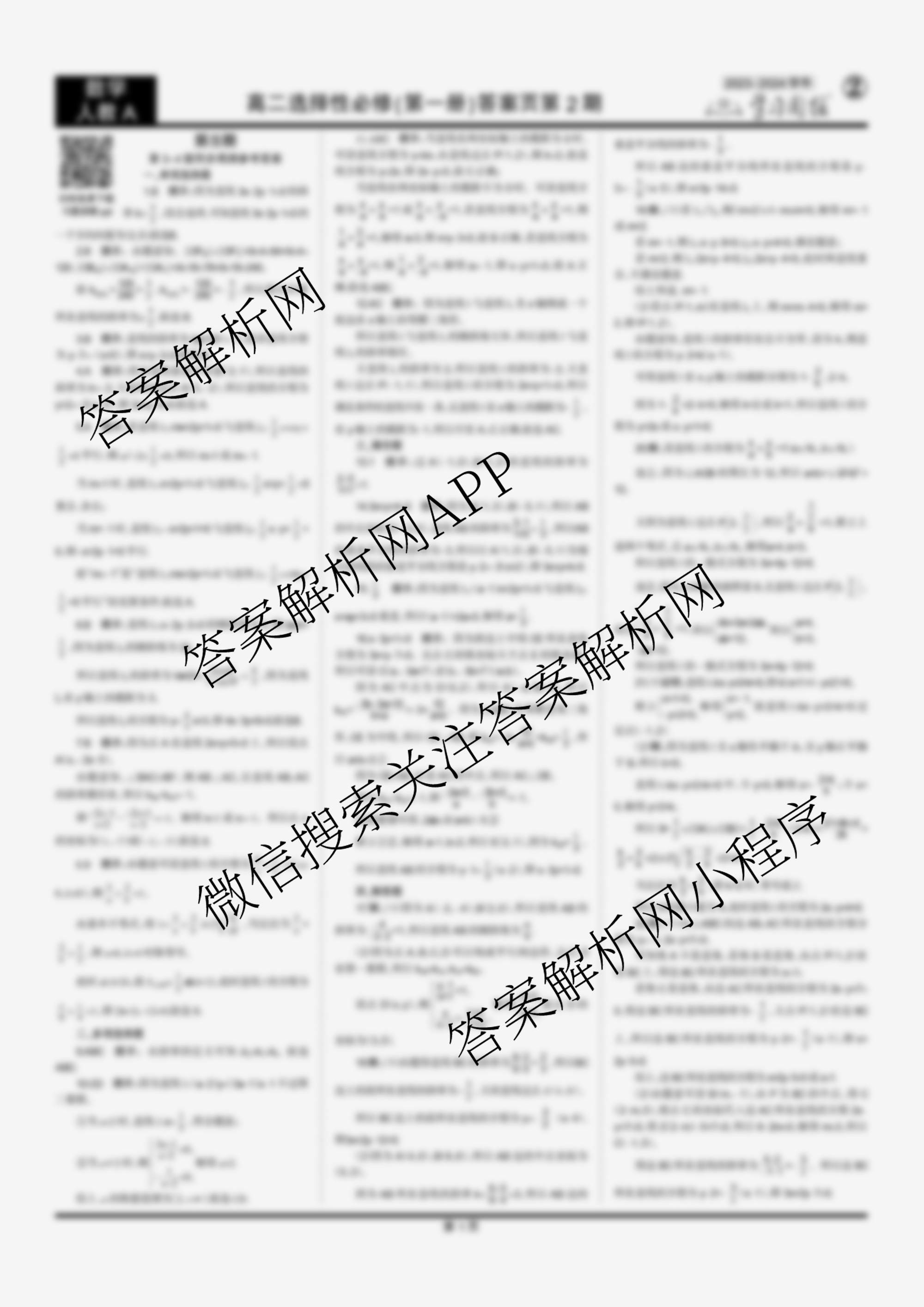 2023-2024 学习周报 数学人教A高二选择性必修(第一册)第5期答案