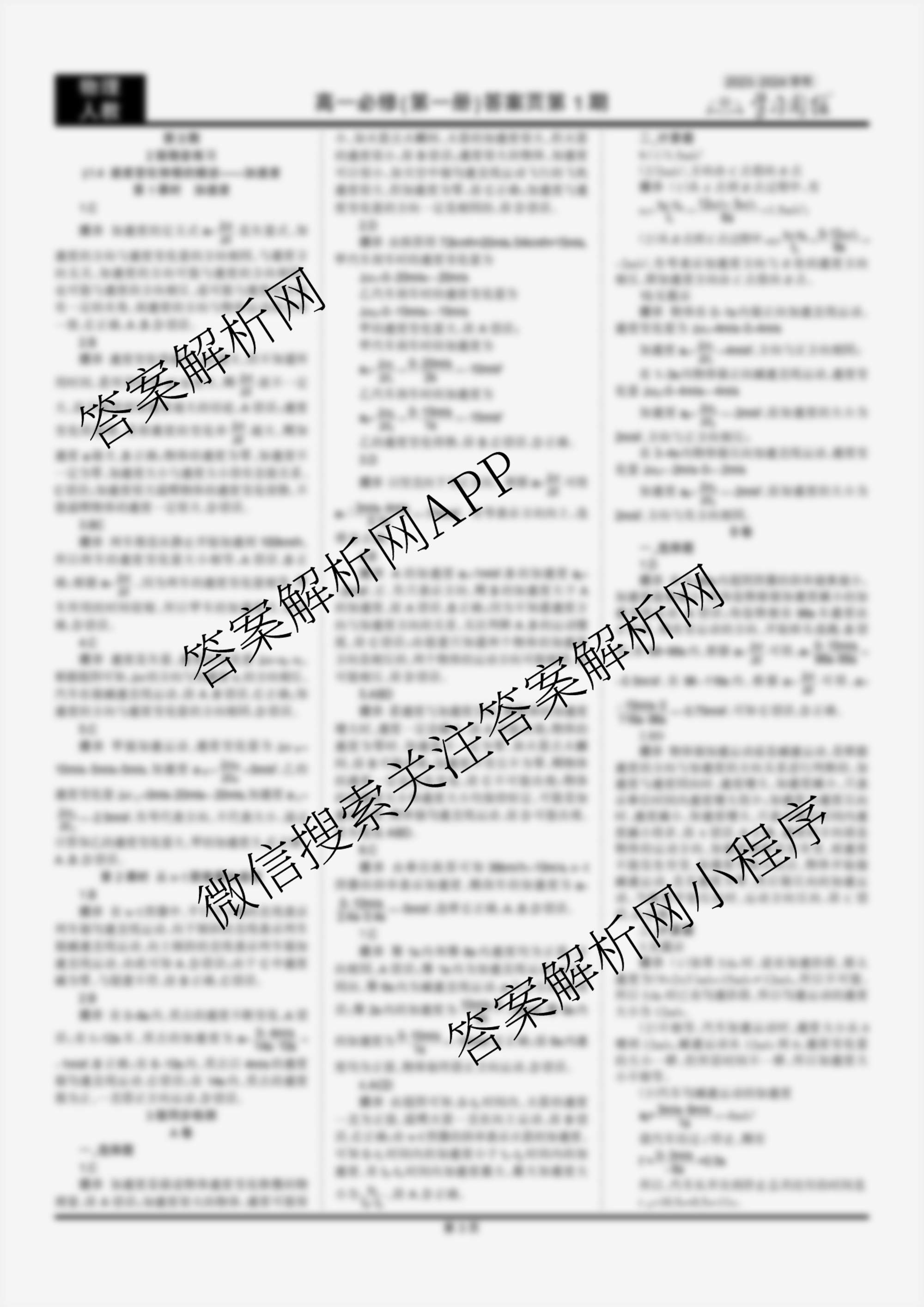 2023-2024 学习周报 物理人教高一必修(第一册)第3期答案