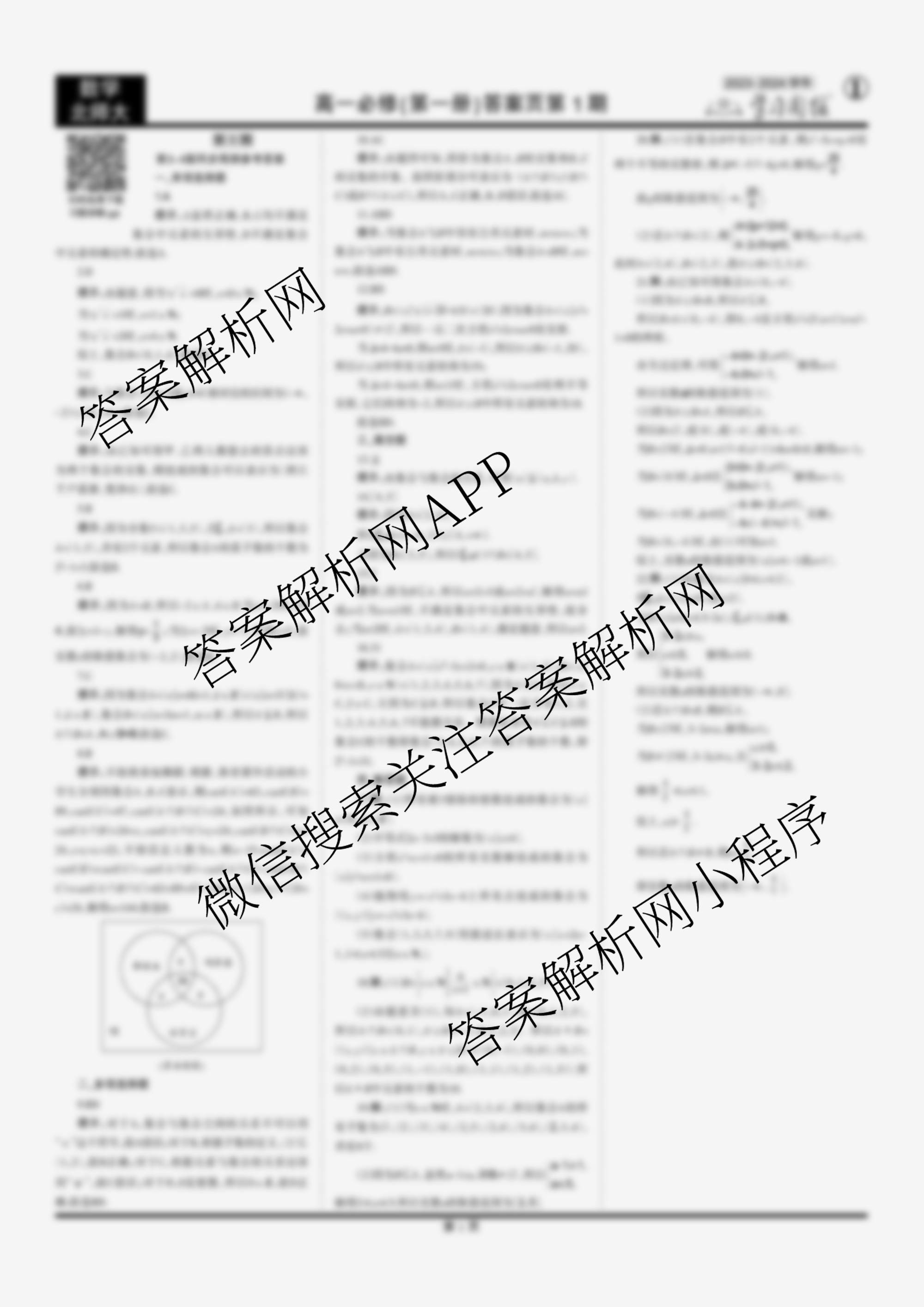 2023-2024 学习周报 数学北师大高一必修(第一册)第1期答案