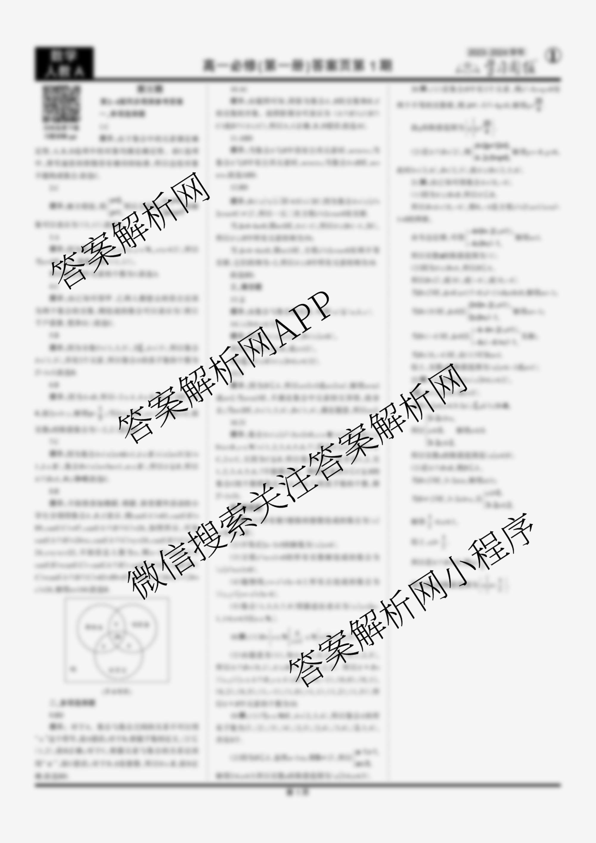 2023-2024 学习周报 数学人教A高一必修(第一册)第1期答案