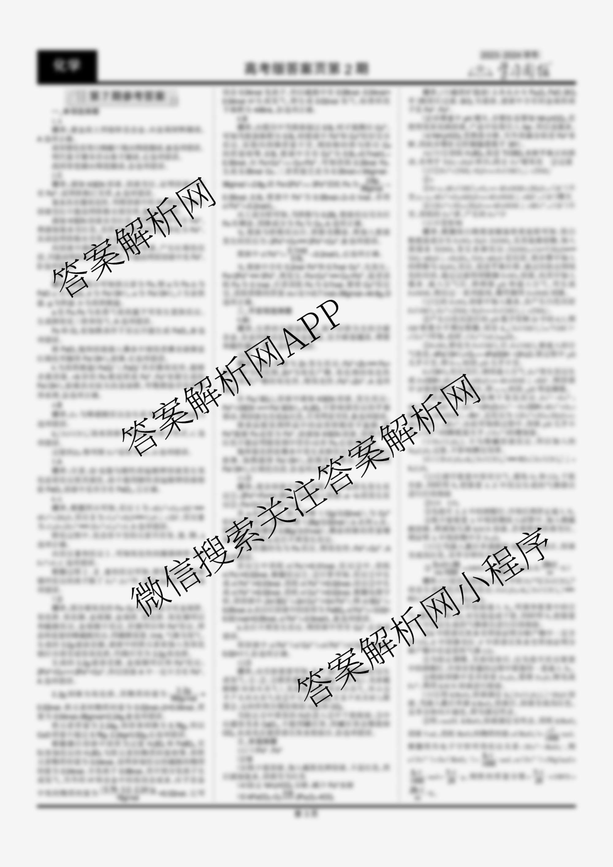 2023-2024 学习周报 化学(高考版)第7期答案