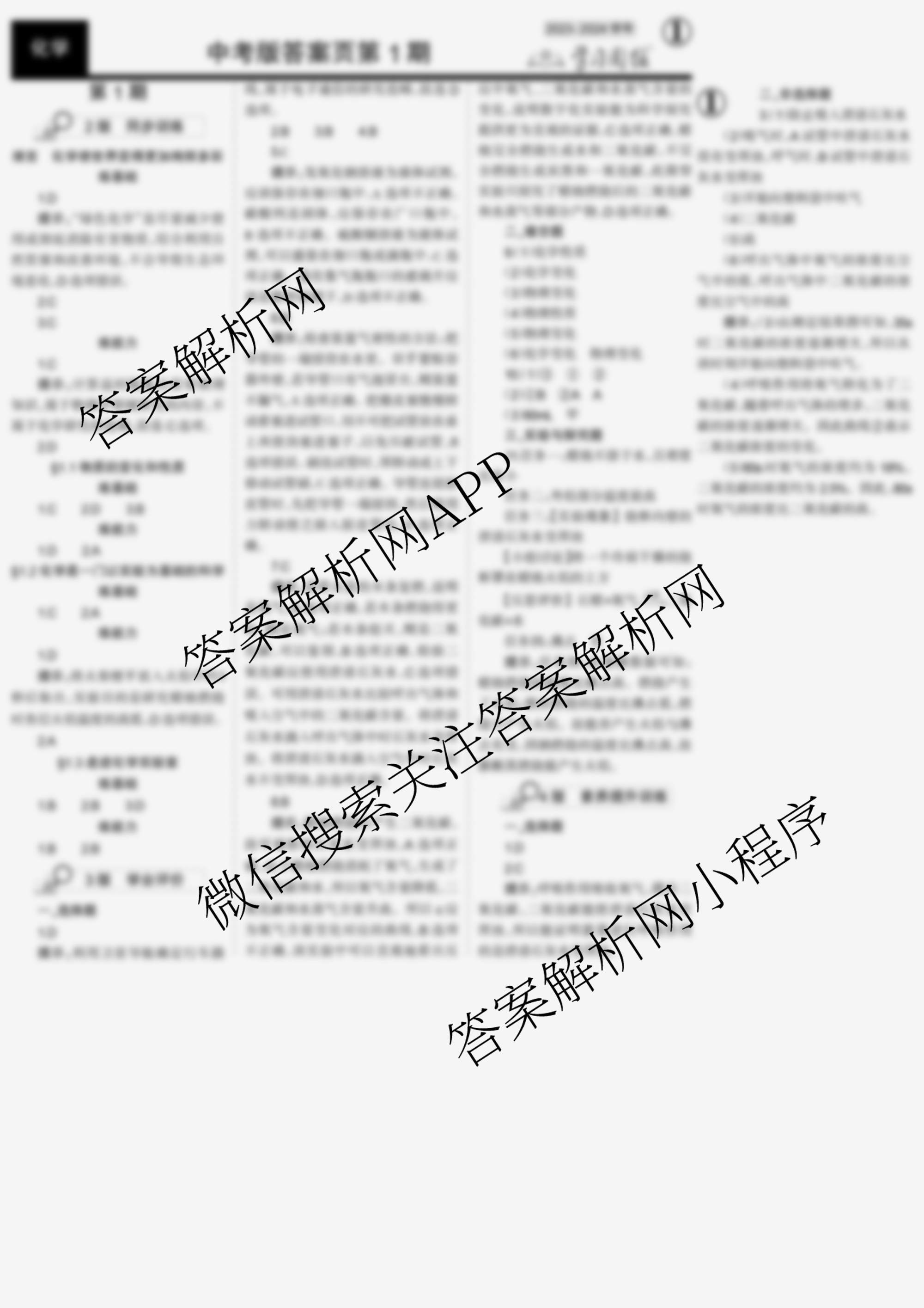 2023-2024 学习周报 化学 中考版第1期答案