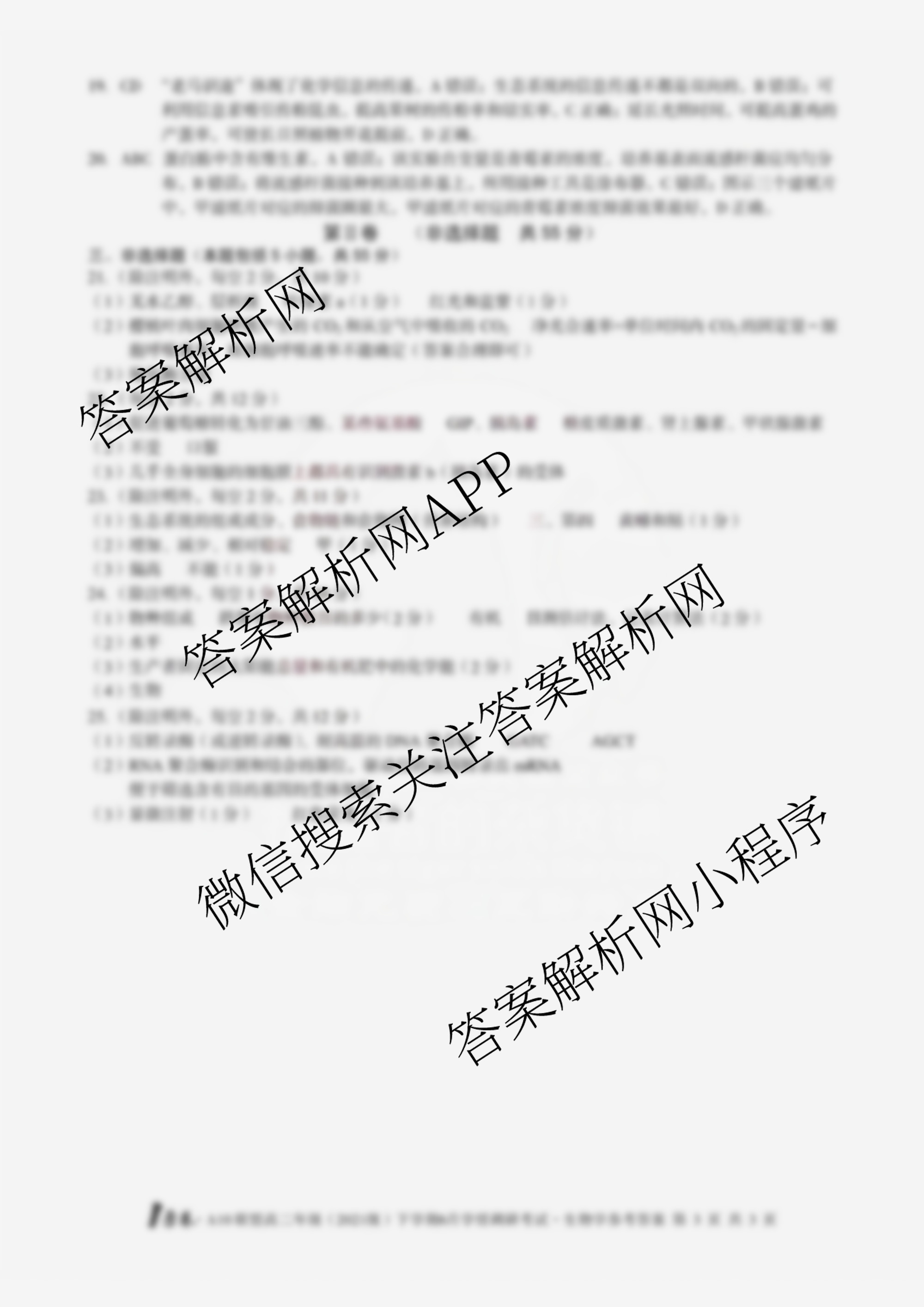- [1号卷]A10联盟[高二]年级(2021级)下学期6月学情调研考试生物答案