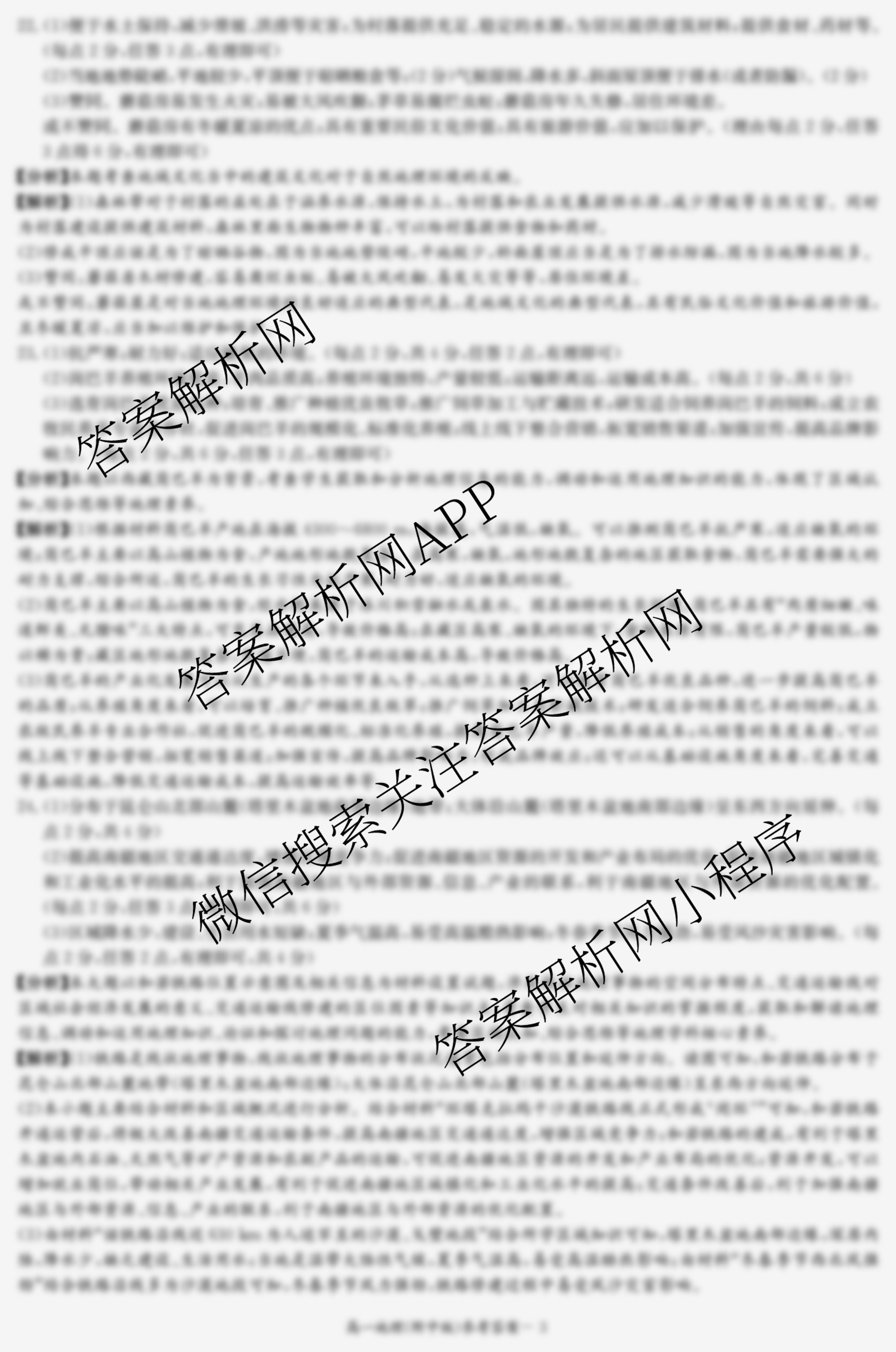 - [高一]湖南师大附中2022~2023学年度第二学期第二次大练习地理答案