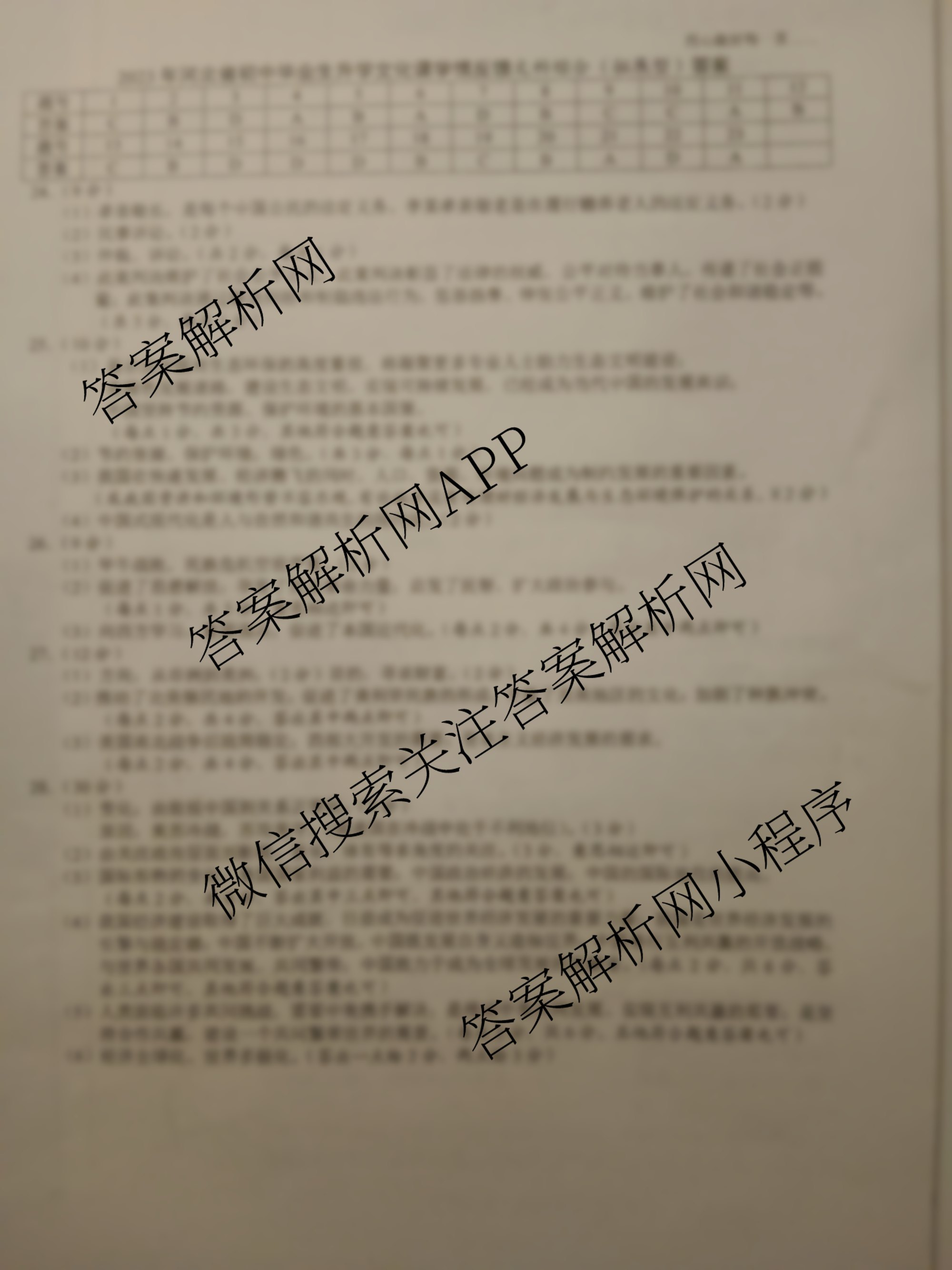 (九年级)[文博志鸿]·2023年河北省初中毕业生升学文化课学情反馈(拓展型)文综答案