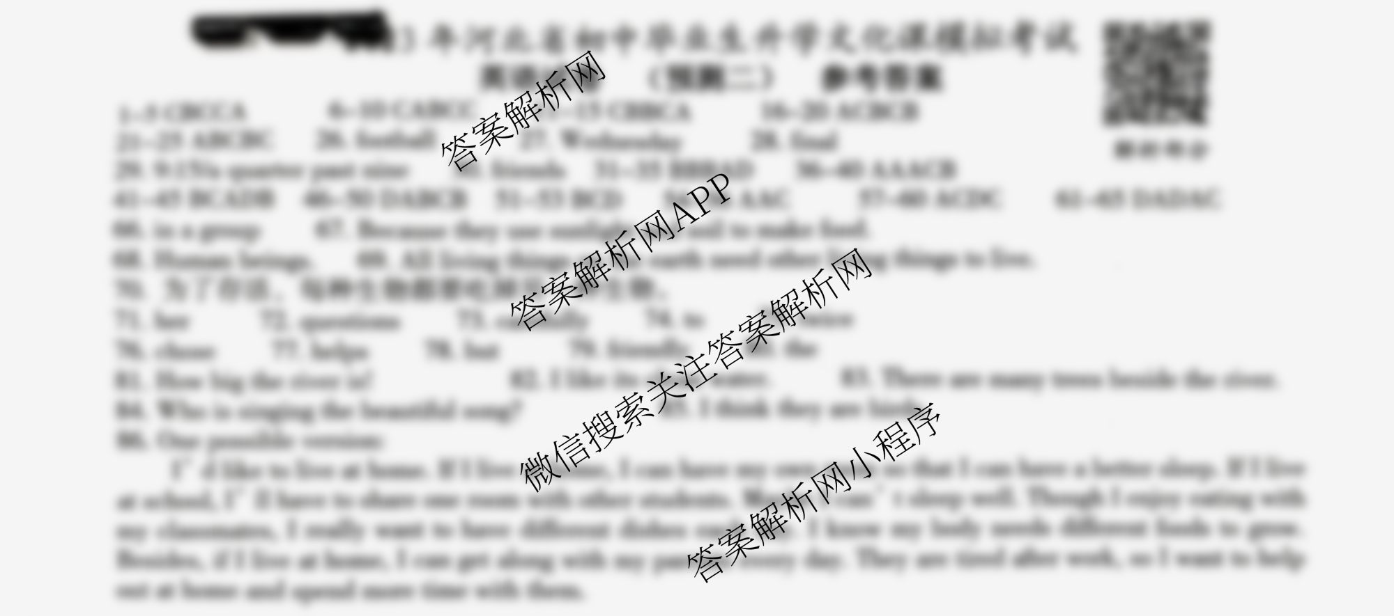 - [文博志鸿]·2023年河北省初中毕业生升学文化课模拟考试(预测二)英语答案