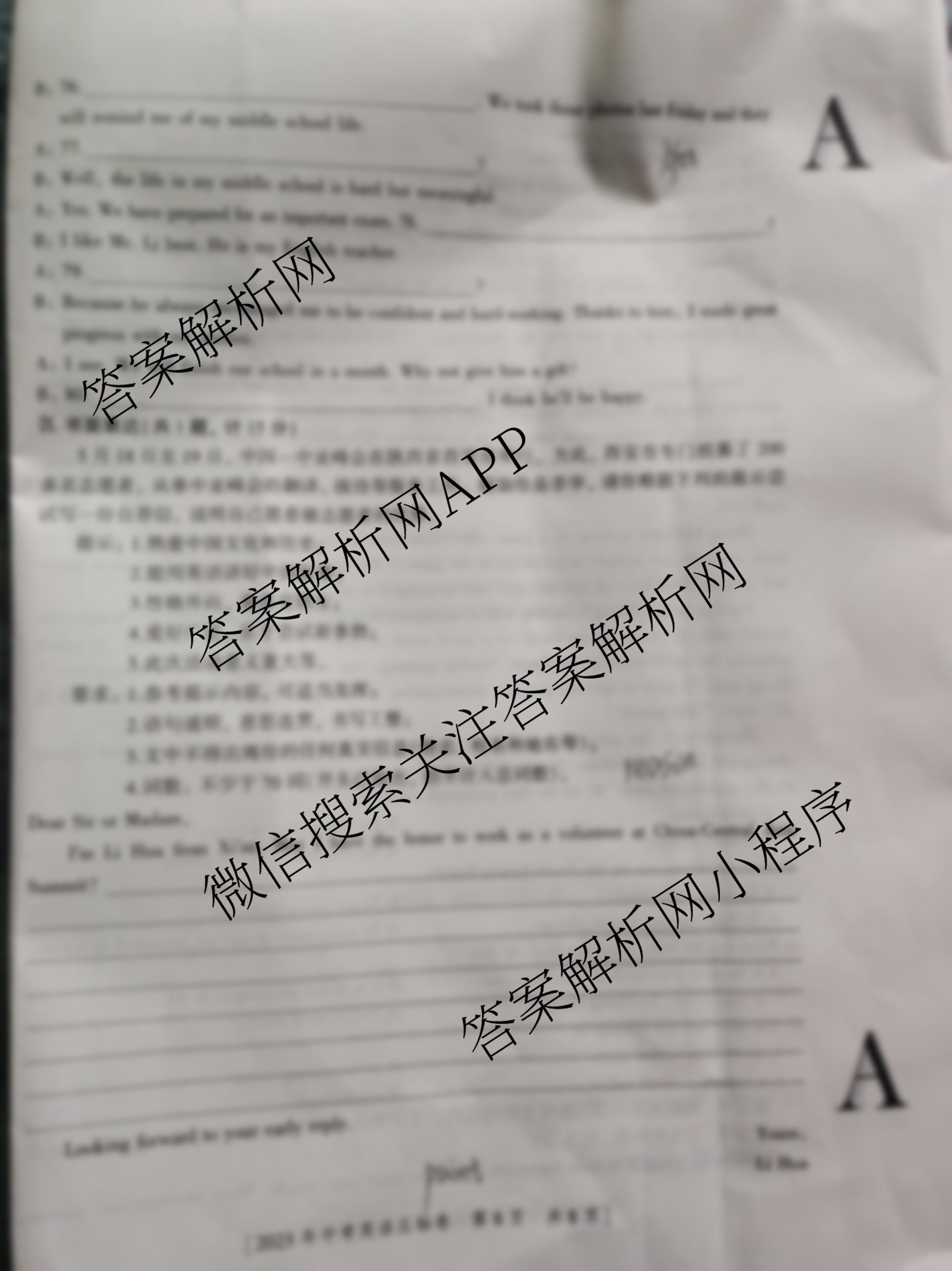 - [益卷]2023年陕西省初中学业水平考试压轴卷英语(A)答案