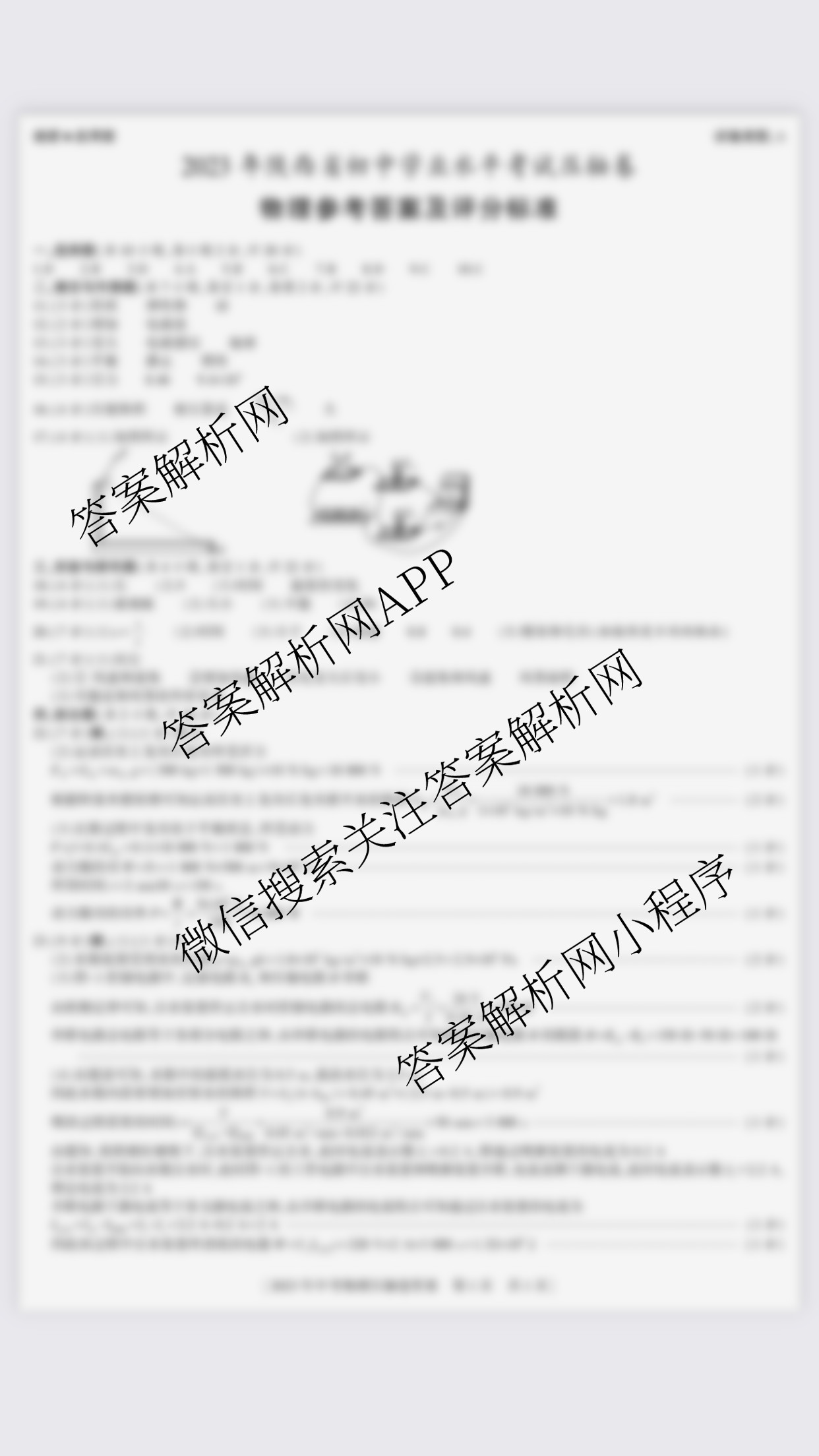 - [九年级]益卷2023年陕西省初中学业水平考试压轴卷物理(A)答案