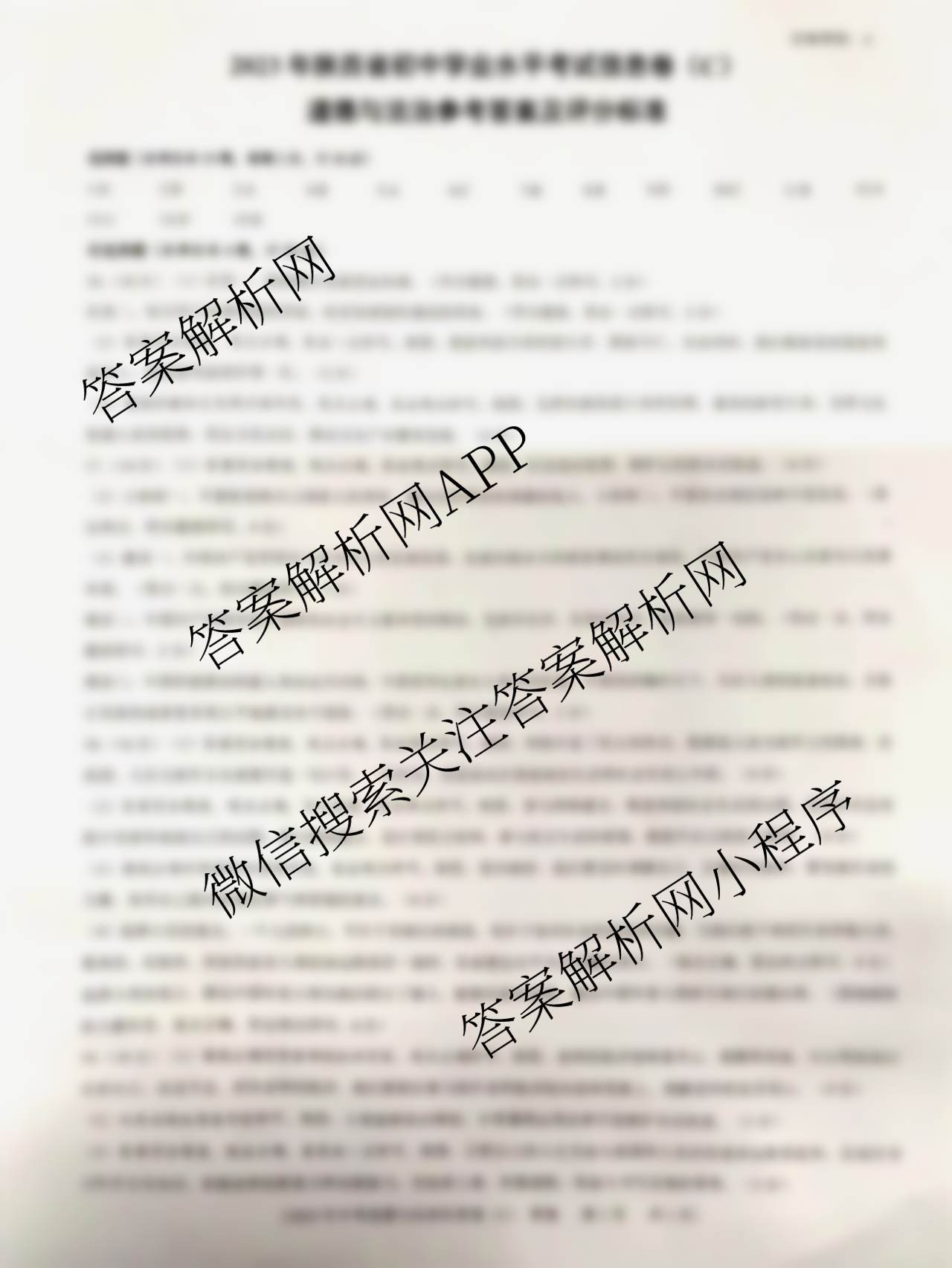 - (九年级)(益卷)2023年陕西省初中学业水平考试信息卷(C)道德与法治(A)答案