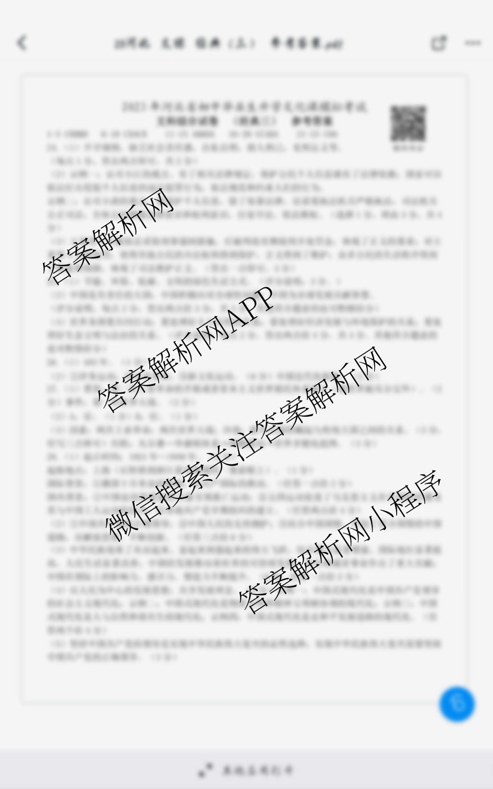 - [九年级](文博志鸿)2023年河北省初中毕业生升学文化课模拟考试(经典三)道德与法治答案