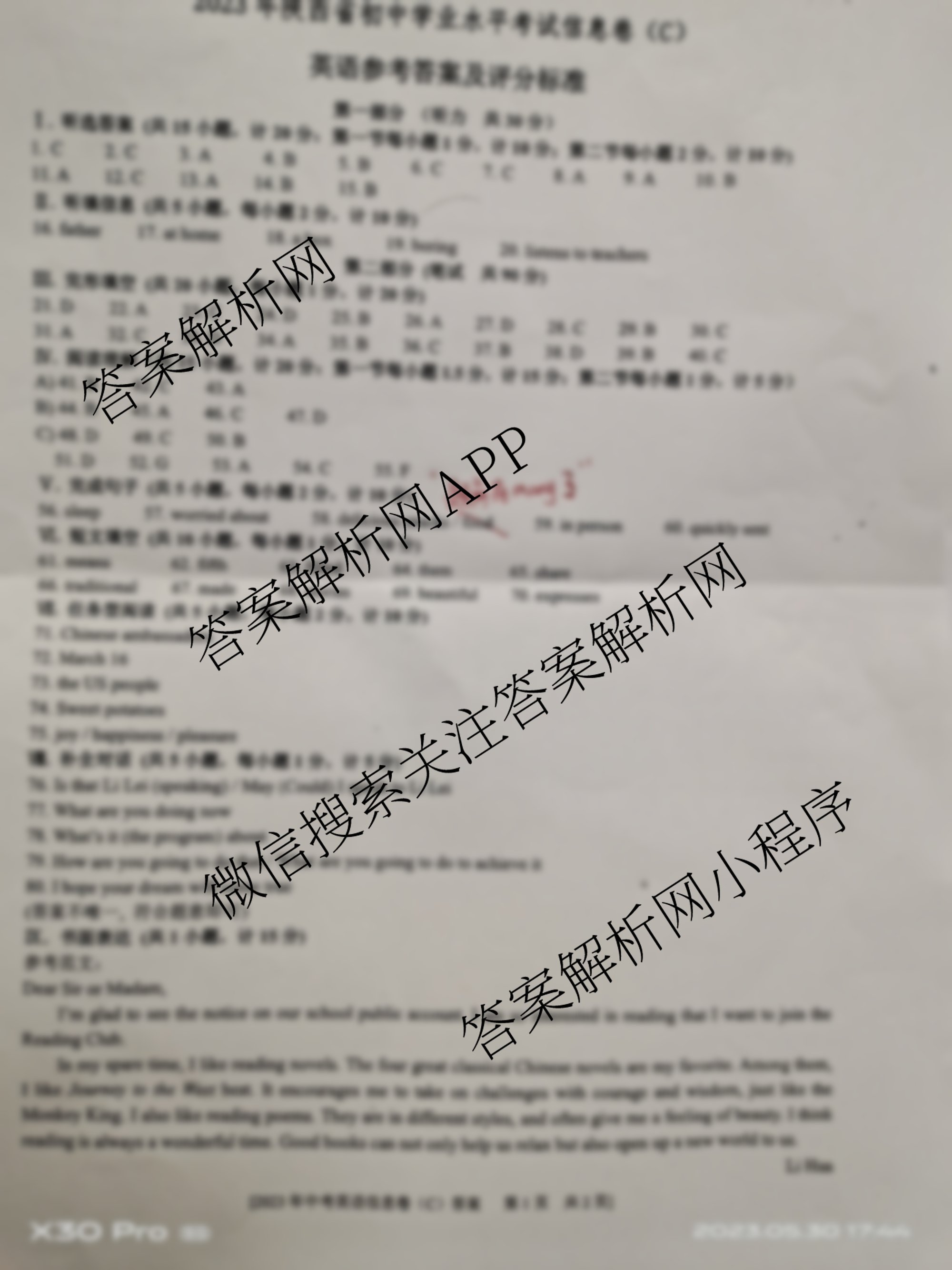 - (益卷)·2023年陕西省初中学业水平考试信息卷(C)英语(A)答案