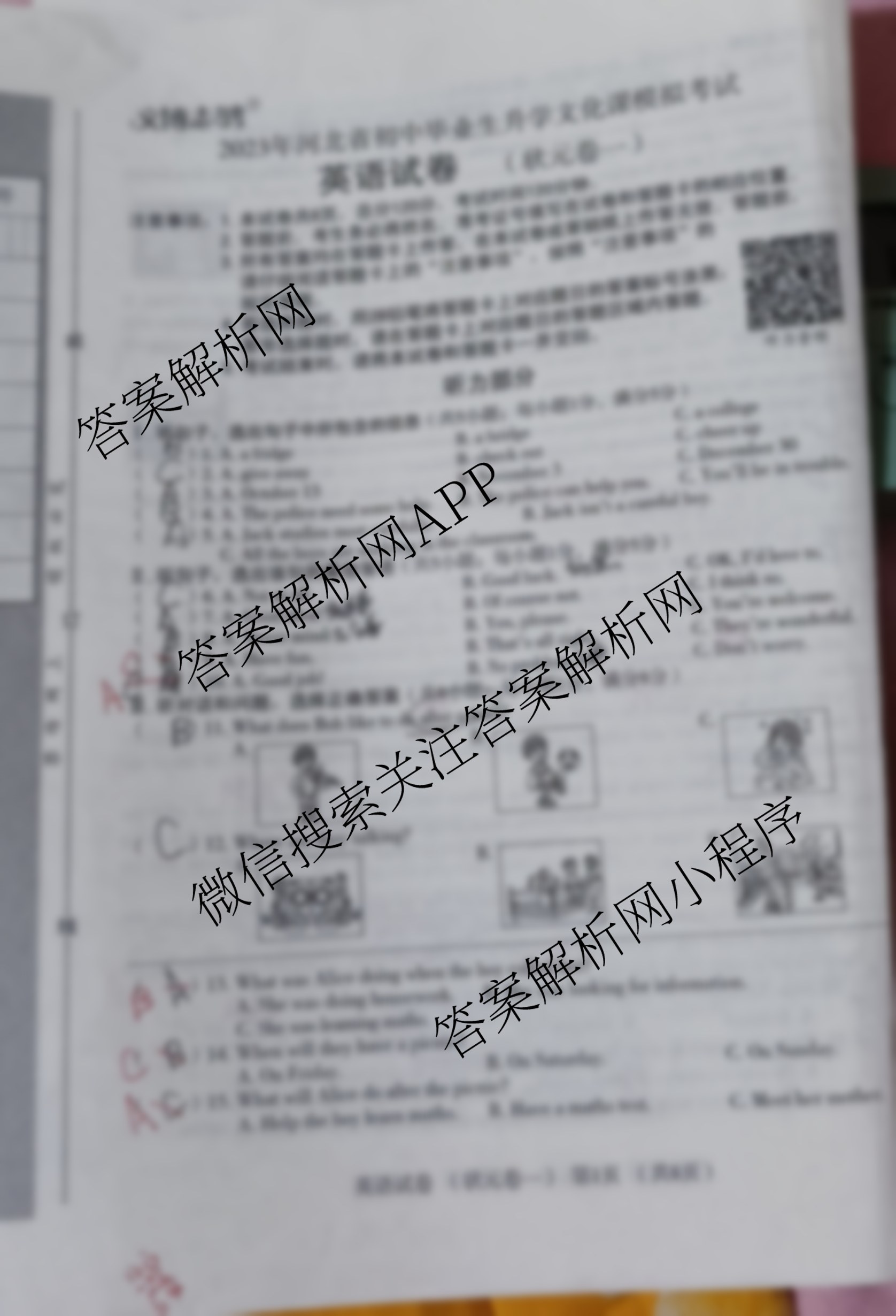 - (文博志鸿)·2023年河北省初中毕业生升学文化课模拟考试(状元卷一)英语试题