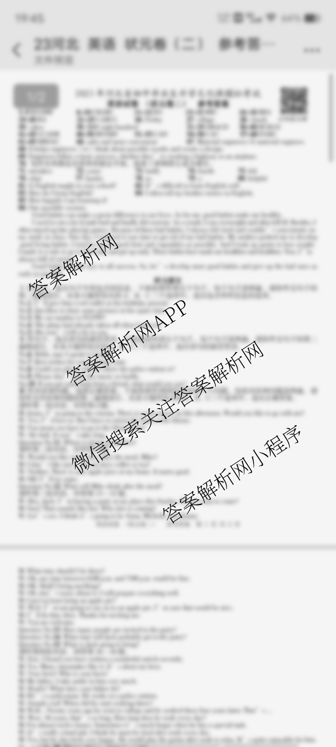 - [九年级]文博志鸿2023年河北省初中毕业生升学文化课模拟考试(状元卷二)英语答案