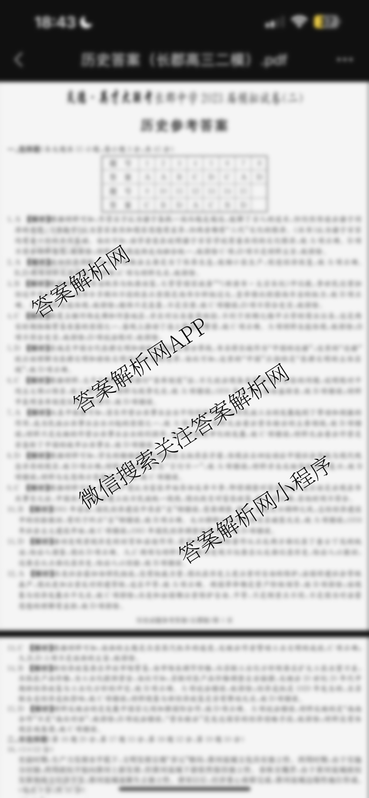 - 2023届(高三)[炎德英才大联考]长郡中学模拟试卷(二)历史答案