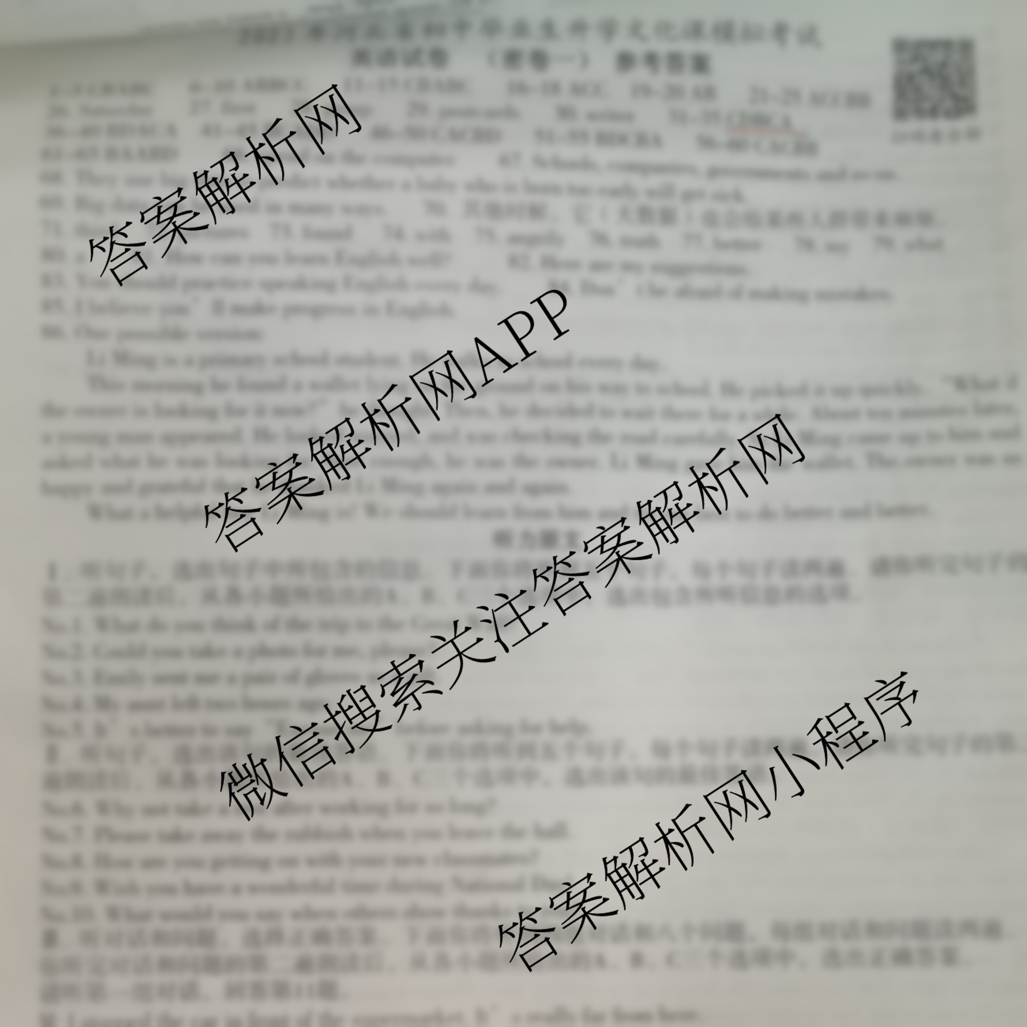 文博志鸿·2023年河北省初中毕业生升学文化课模拟考试(密卷一)英语答案,目前学英语报答案已经汇总了文博志鸿·2023年河北省初中毕业生升学文化课模拟考试(密卷一)英语答案的各科答案和试卷,获取更多文博志鸿答案解析,请在关注本站。