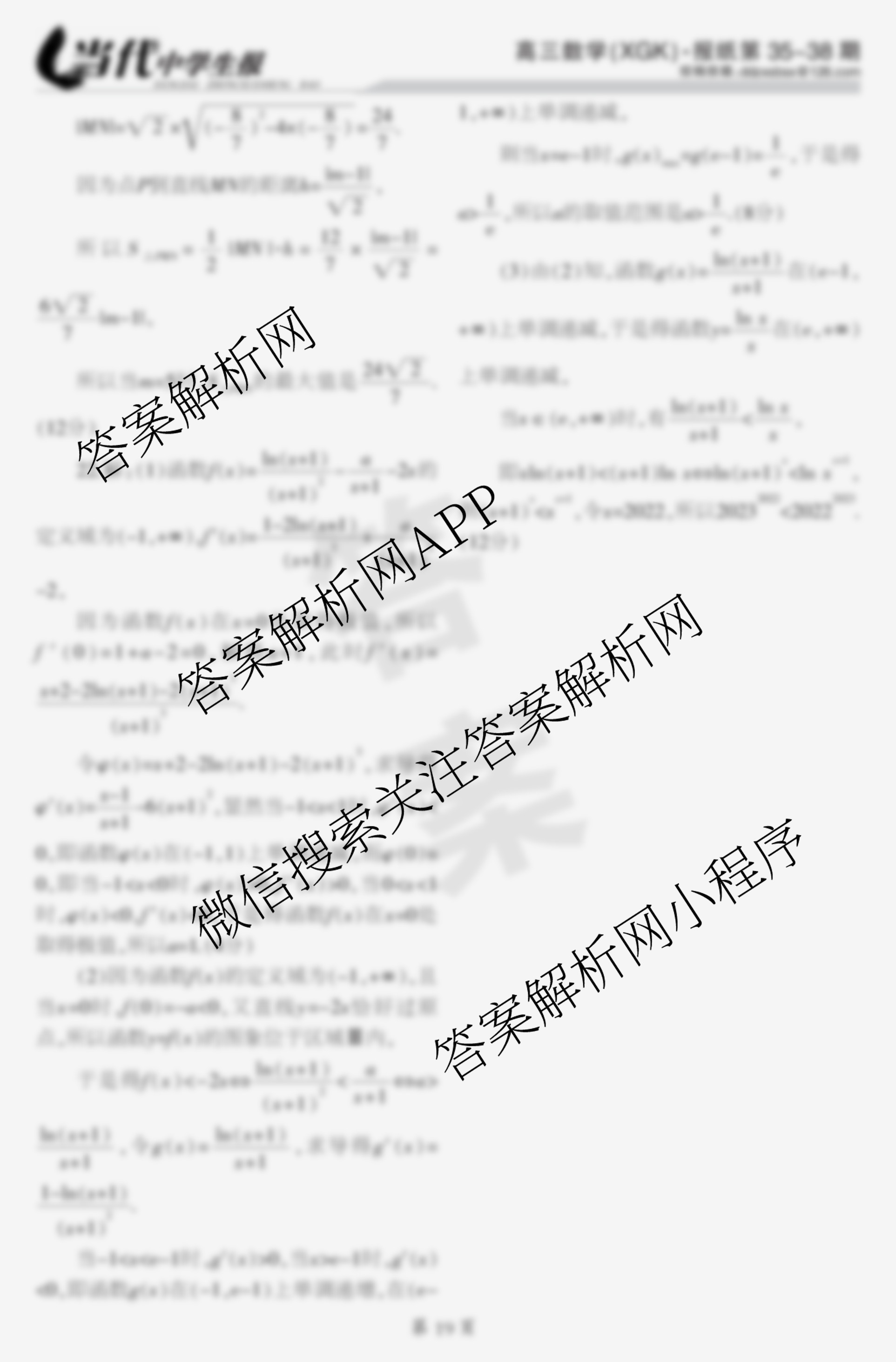 2022-2023 当代中学生报 高三 数学(XGK)第36期答案,目前学英语报答案已经汇总了2022-2023 当代中学生报 高三 数学(XGK)第36期答案的各科答案和试卷,获取更多当代中学生报答案解析,请在关注本站。