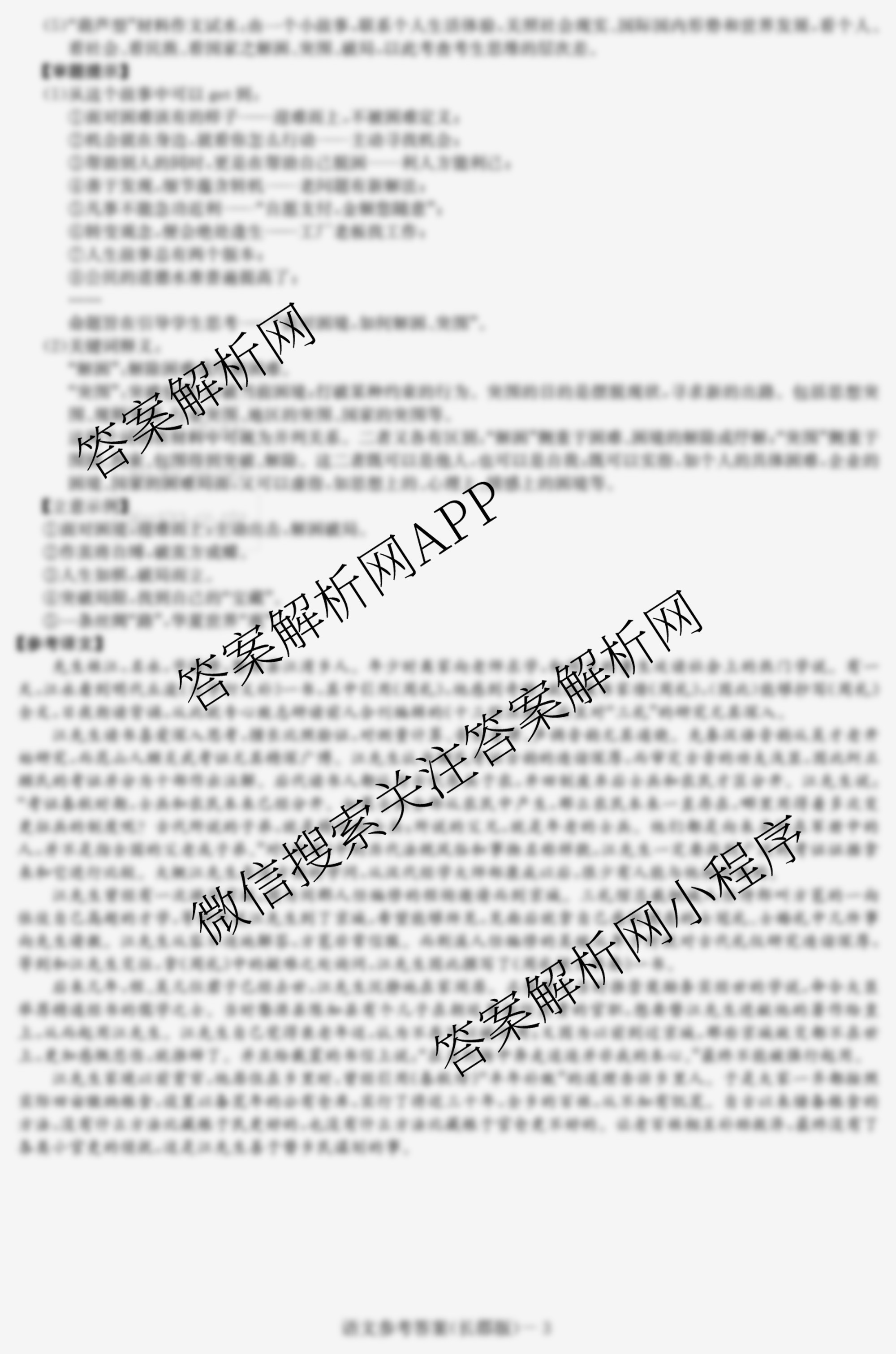 - 2023届[高三][炎德英才大联考]长郡中学模拟试卷(二)语文答案
