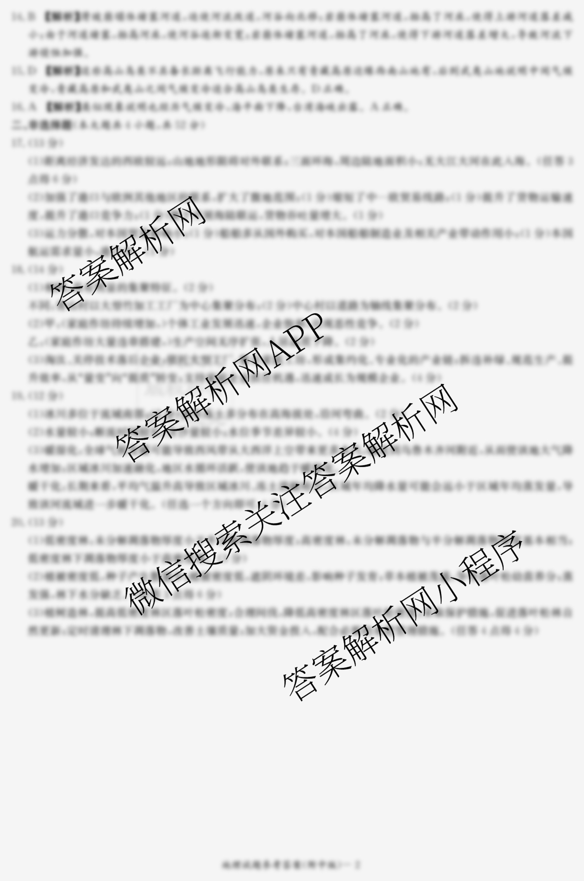 [高三][炎德英才大联考]湖南师大附中2023届模拟卷(三)3地理答案